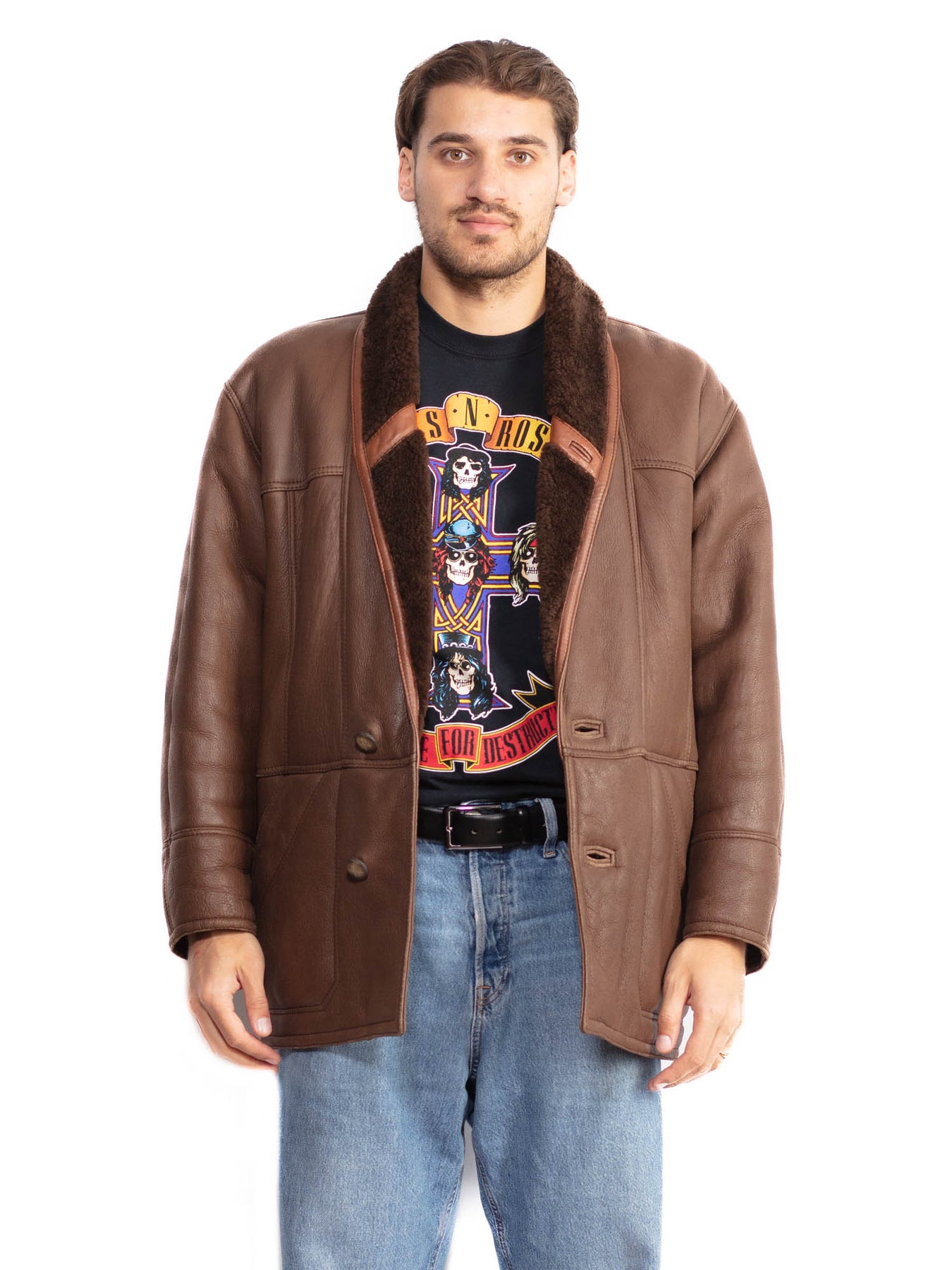 Brown Vintage 80's Men Sheepskin Coat in Brown Sheepskin With Free Delivery