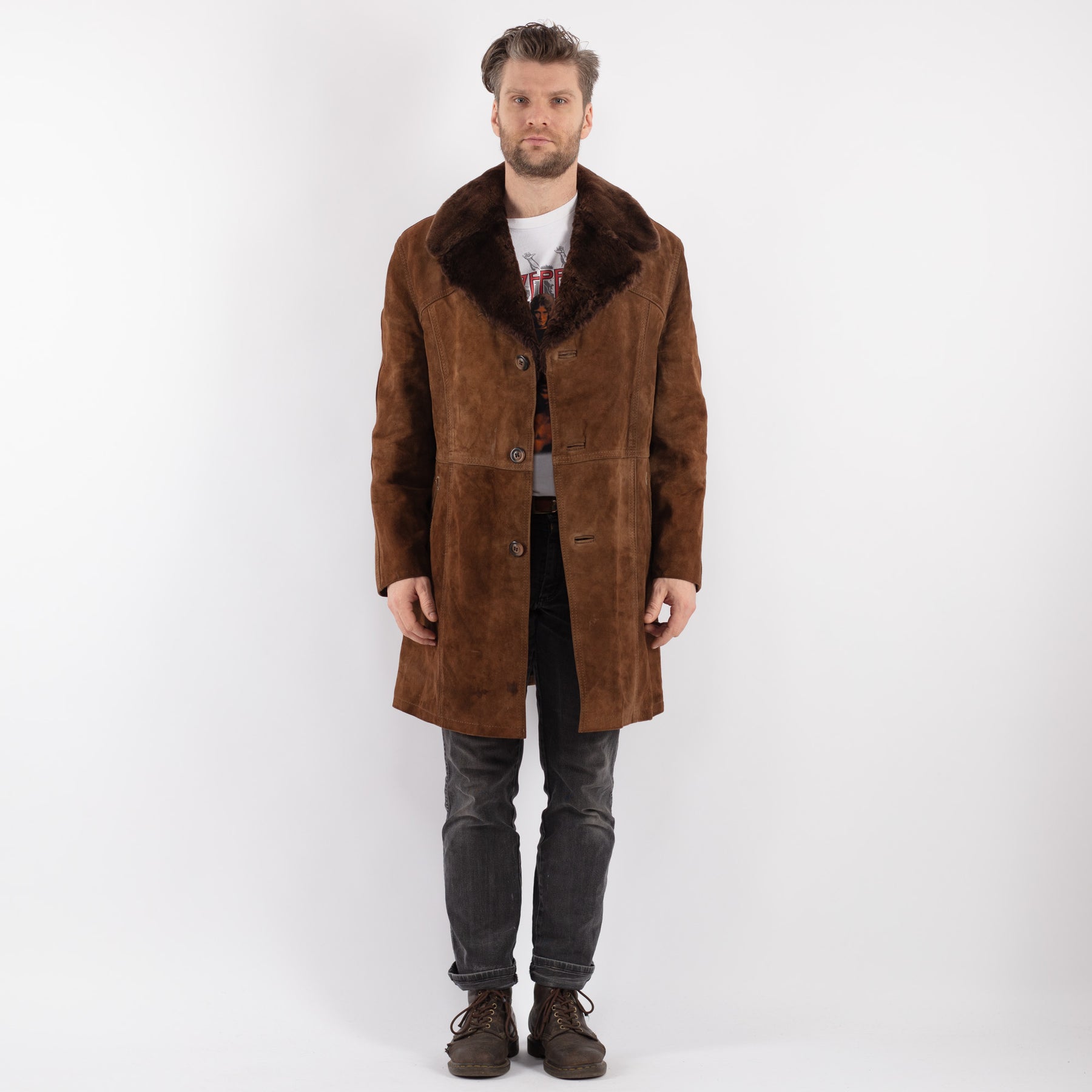 Brown Vintage 70's Men Suede Sherpa Coat in Brown Suede Sherpa With Free Delivery