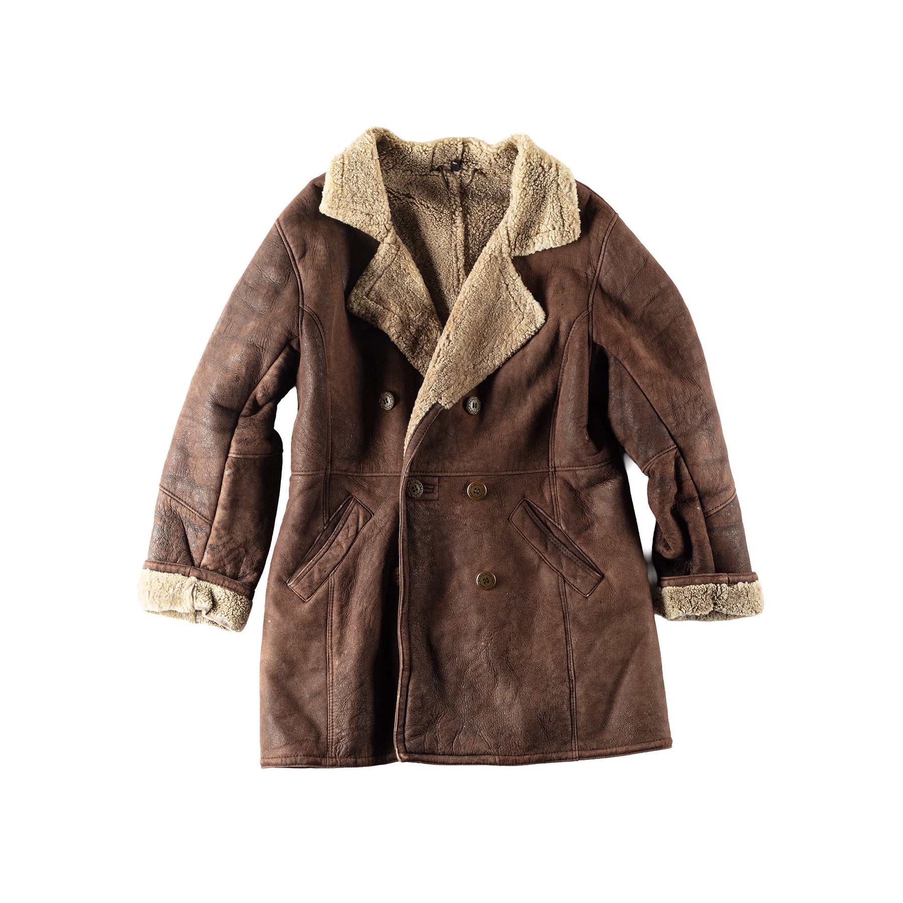 Vintage 80's Men Sheepskin Coat in Brown