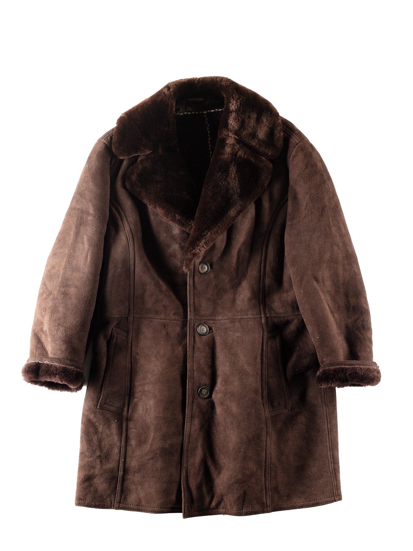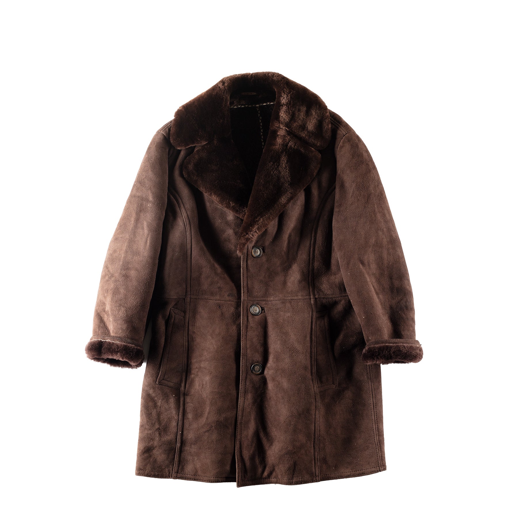 Vintage 80's Men Sheepskin Coat in Brown