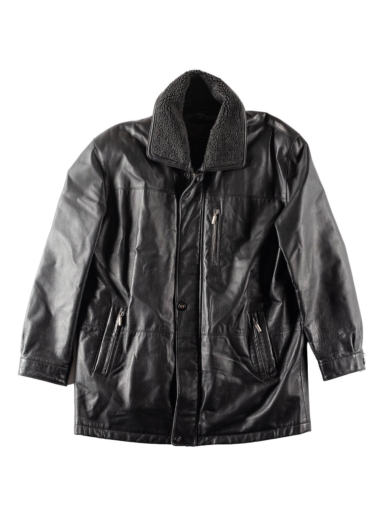 Vintage 90's Men Faux Sheepskin Coat in Black