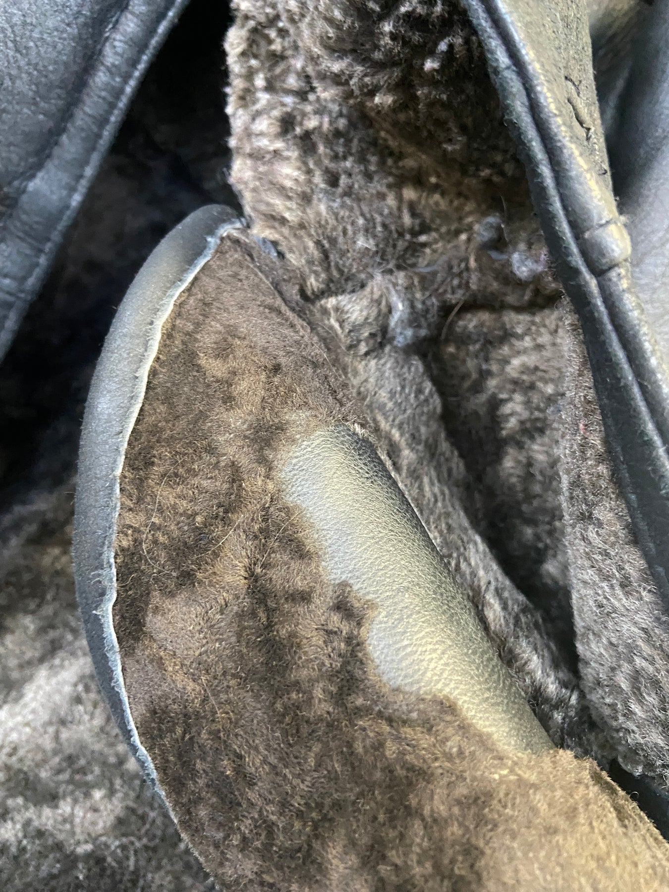Vintage condition evaluation: 7.5/10 Some minor overall wear, light natural creasing and a few subtle surface marks typical for vintage leather. The wool has rubbed off on the left-hand pocket from the inside (see last photo)
