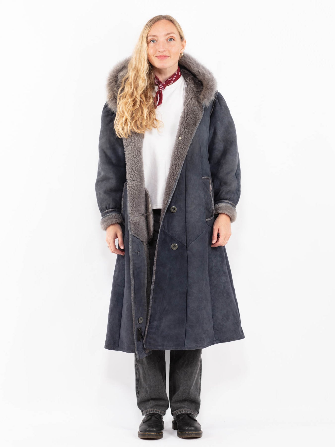 Blue Vintage 80's Women Sheepskin Coat in Blue With Free Delivery