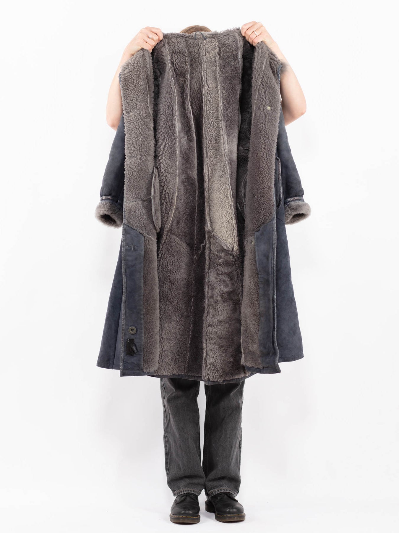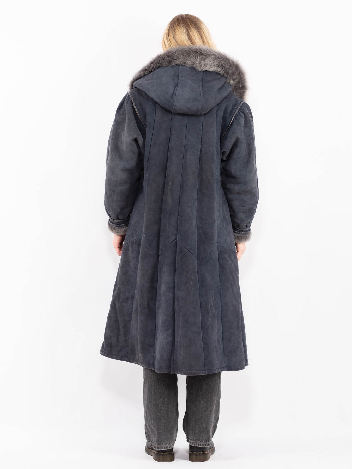 Vintage 80's Penny Lane Sheepskin Coat in Blue Gray