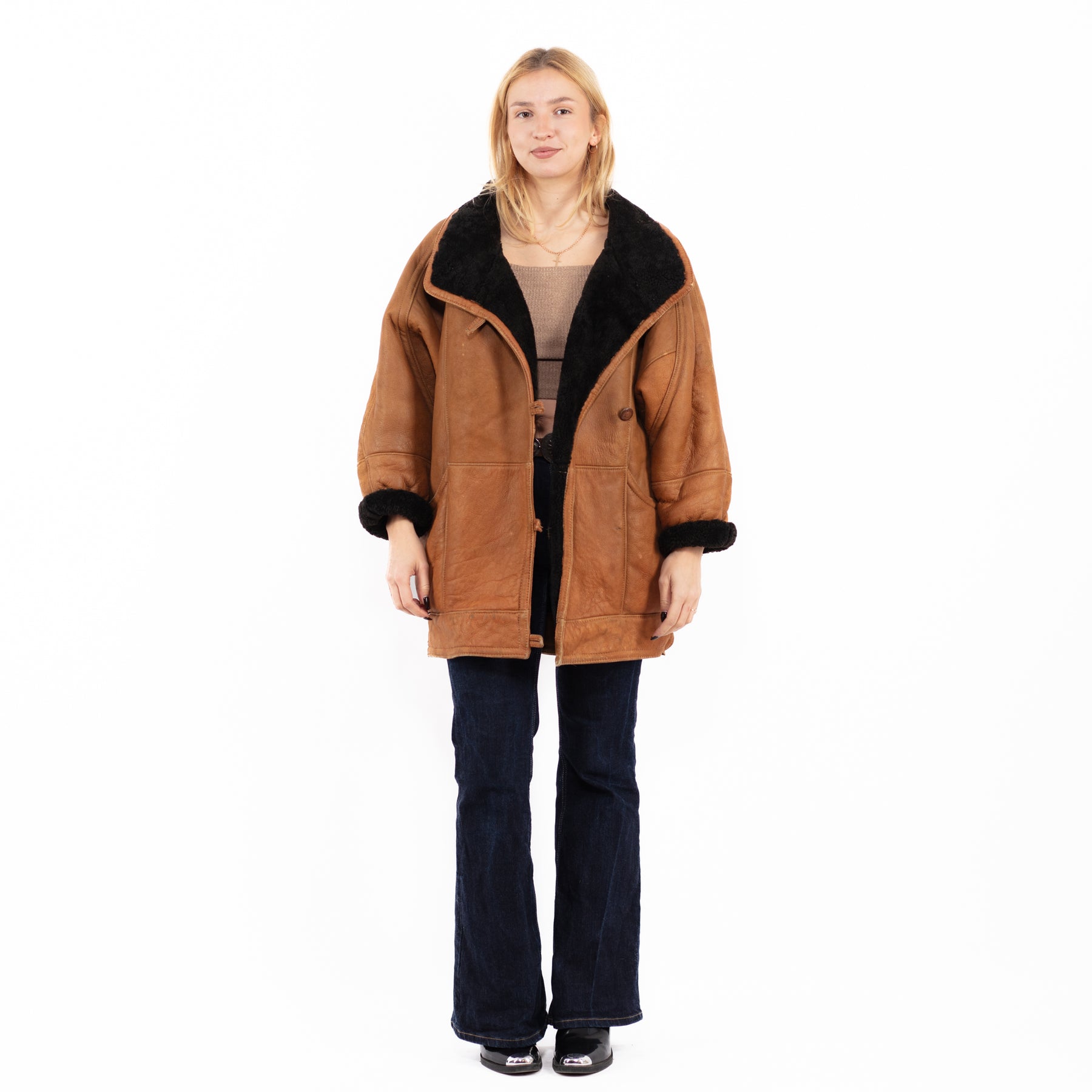 Brown Vintage 80's Women Sheepskin Coat in Brown With Free Delivery