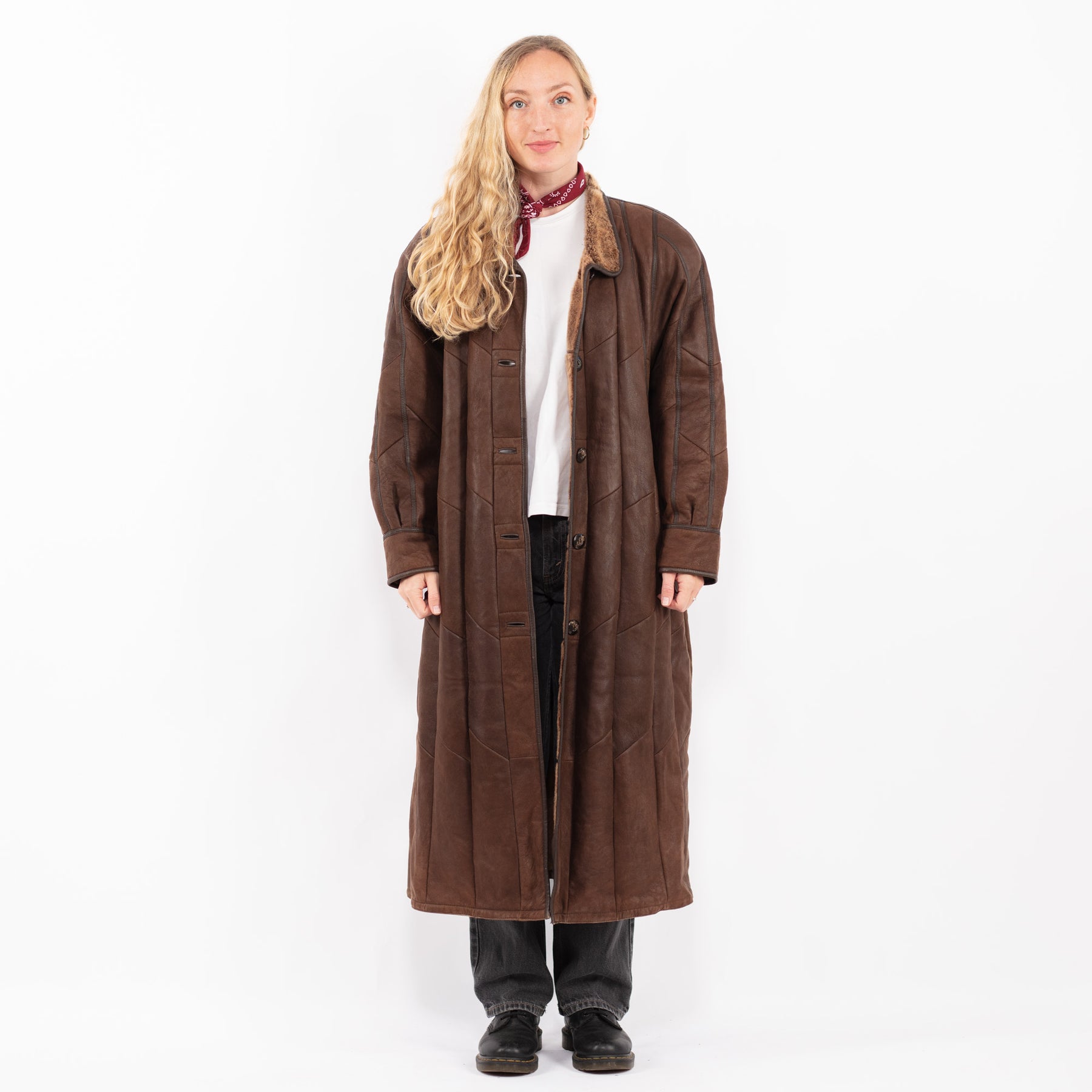 Brown Vintage 90's Women Sheepskin Long Coat in Brown With Free Delivery