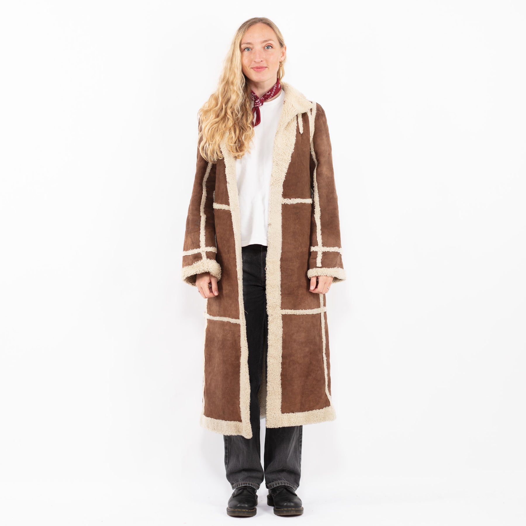 Brown Vintage 90's Women Sheepskin Long Coat in Brown With Free Delivery