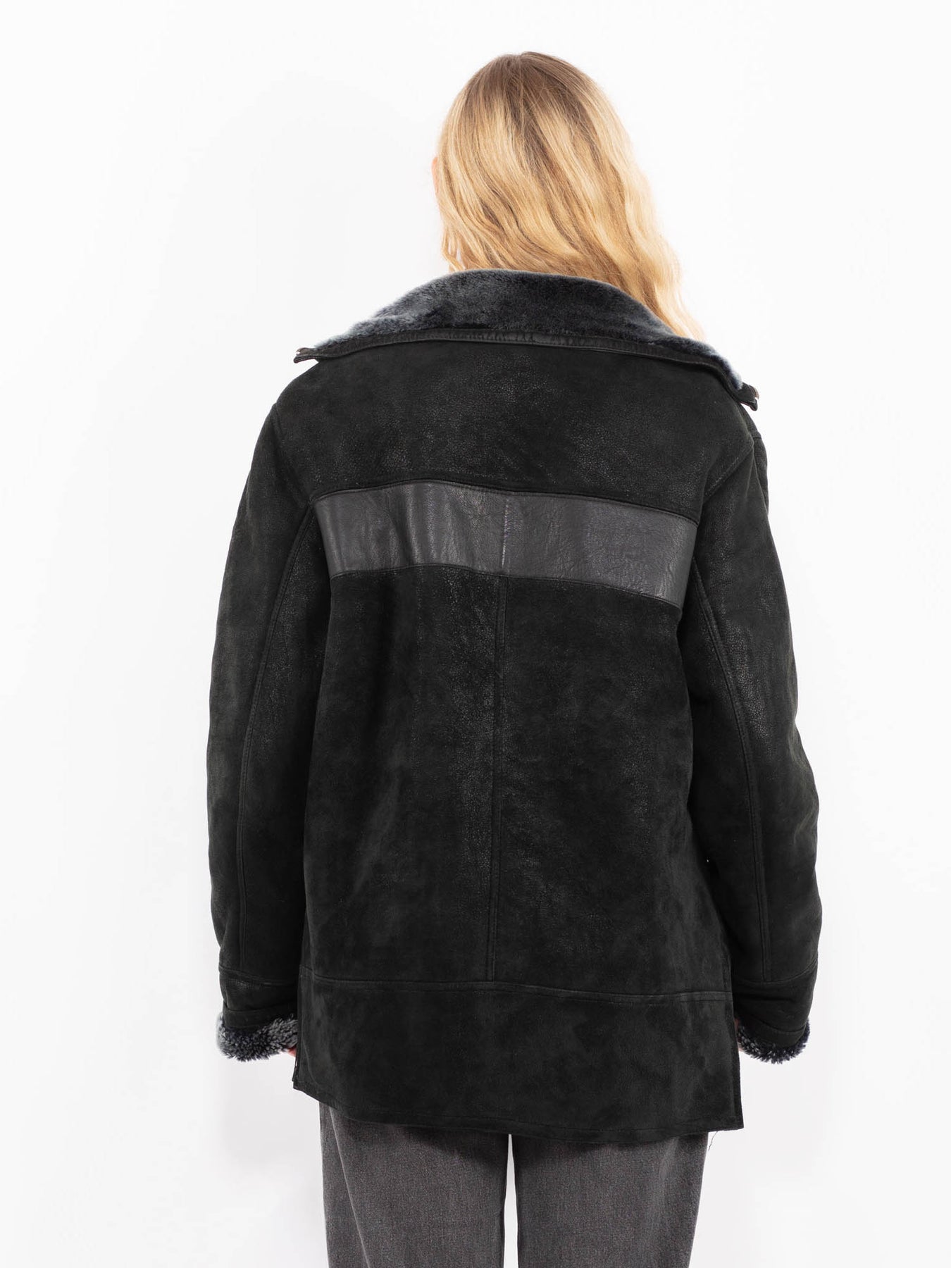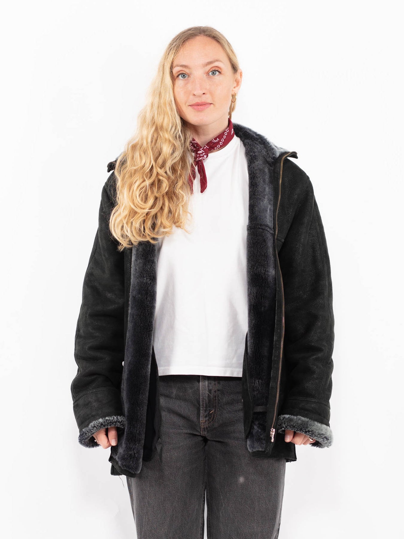 Black Vintage 90's Women Sheepskin Jacket in Black With Free Delivery