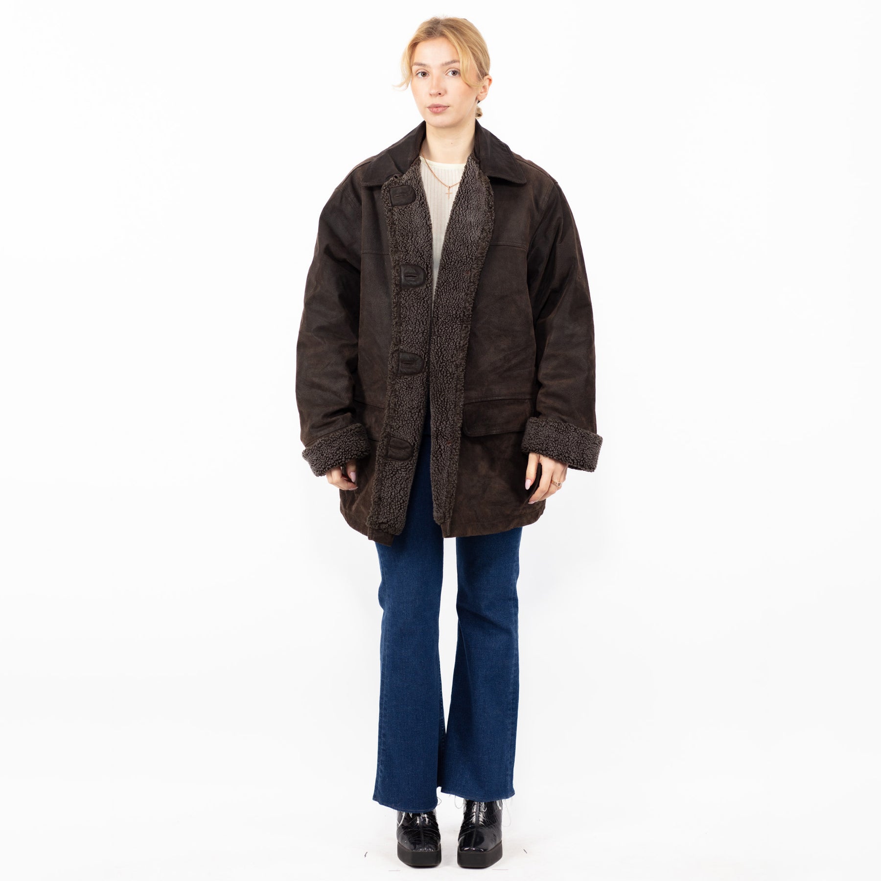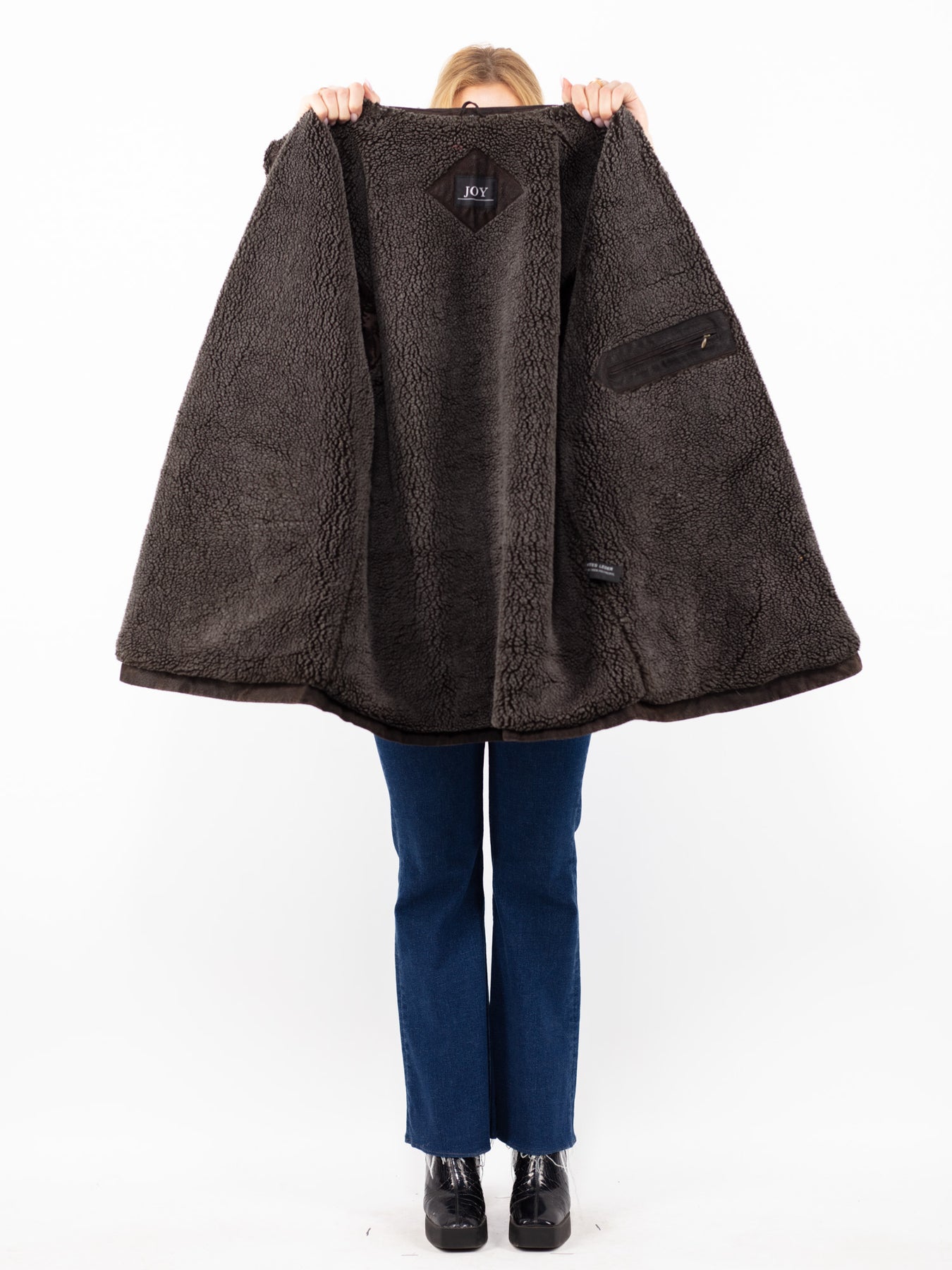 Vintage 90's Women Suede Sherpa Coat in Brown