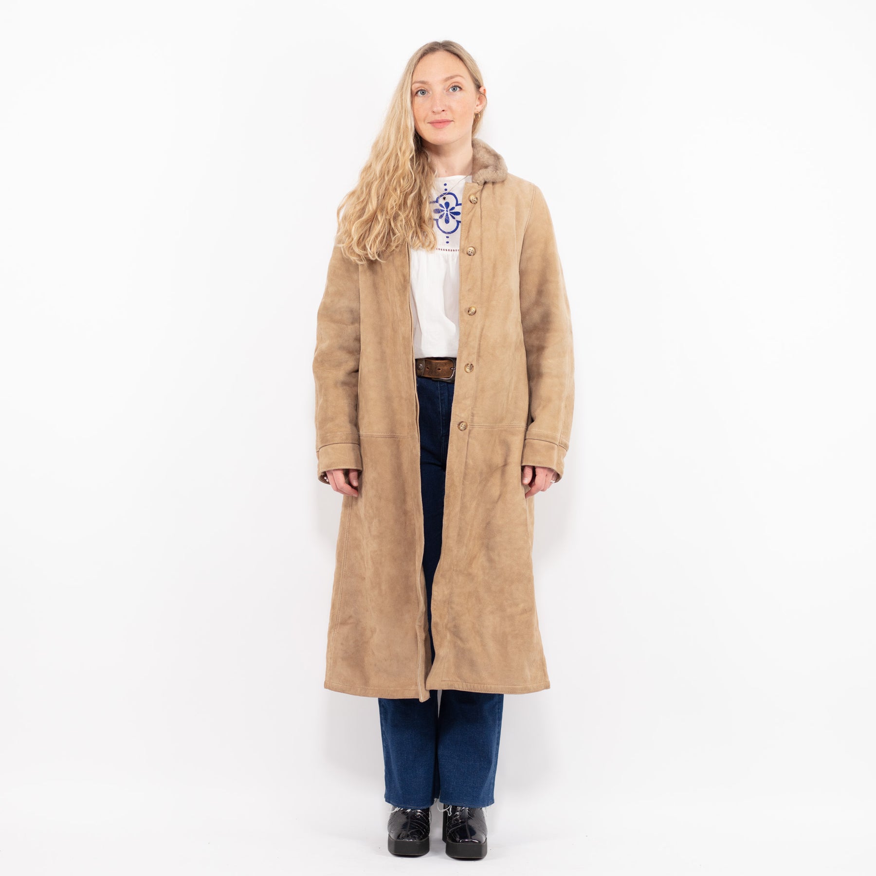Vintage 70's Women Sheepskin Long Coat in Beige