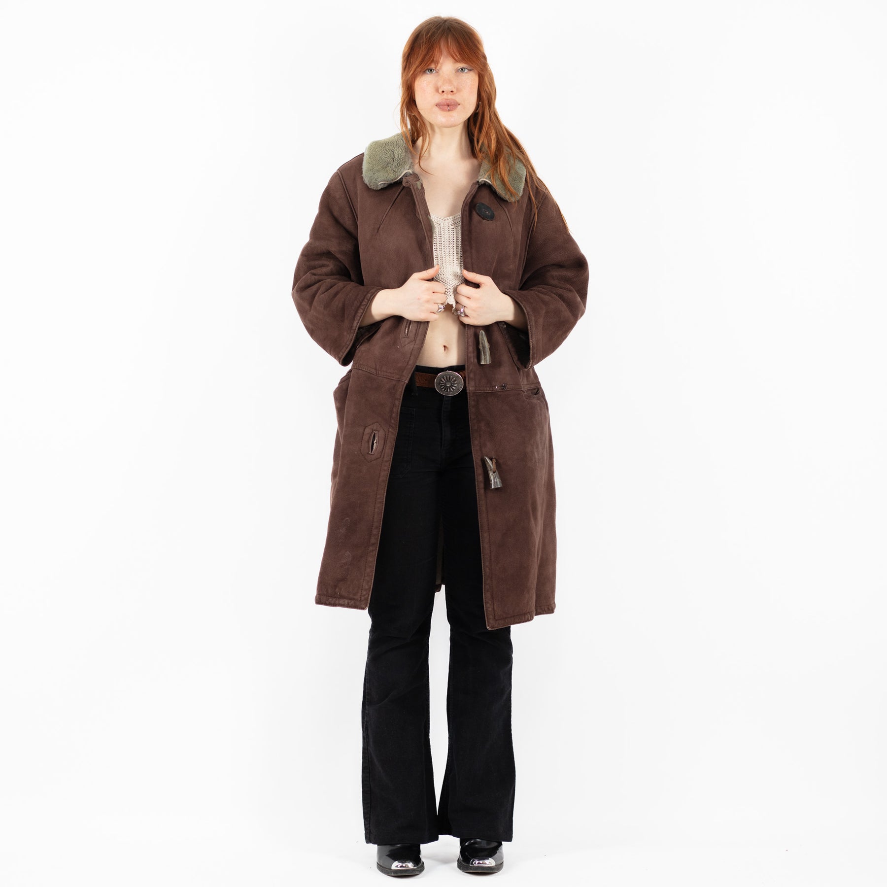 Brown Vintage 70's Women Sheepskin Shearling Coat in Brown With Free Delivery