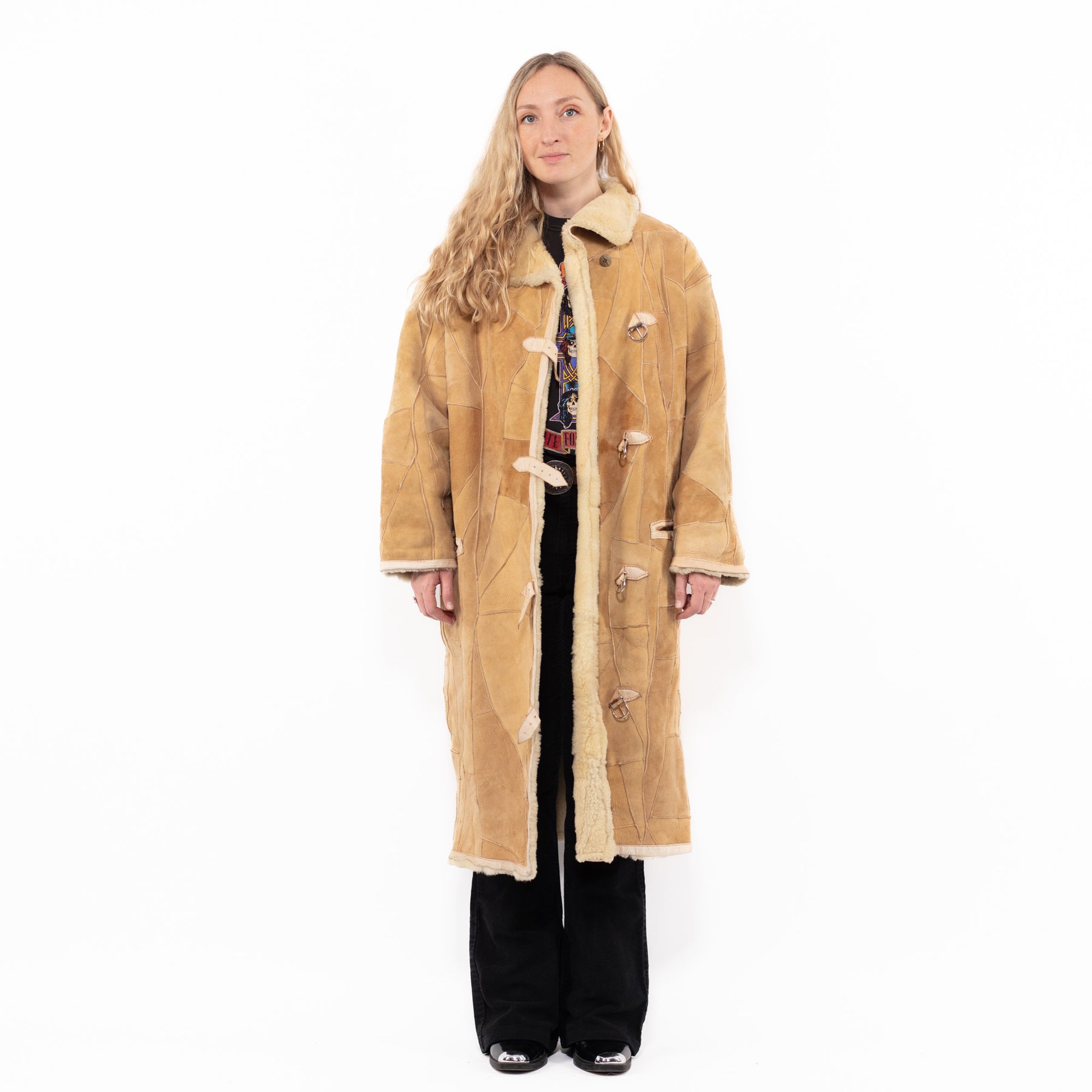 Vintage 90's Women Sheepskin Coat in BeigeA0893