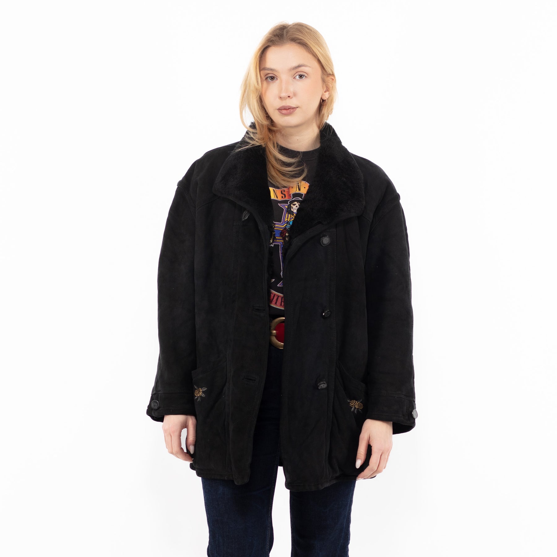 Black Vintage 90's Women Sheepskin Coat in Black With Free Delivery