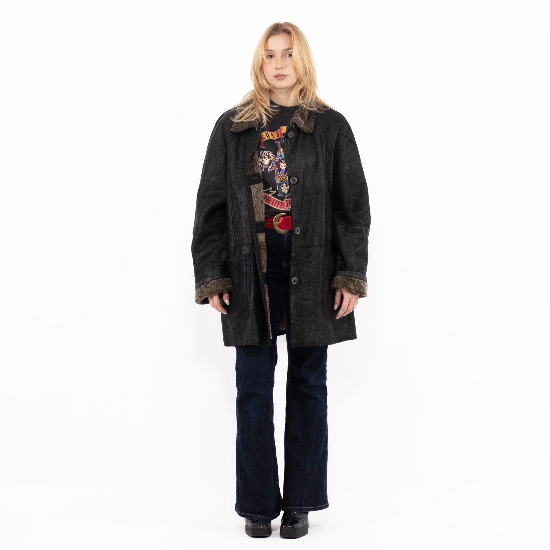 Black Vintage 90's Women Sheepskin Coat in Black With Free Delivery