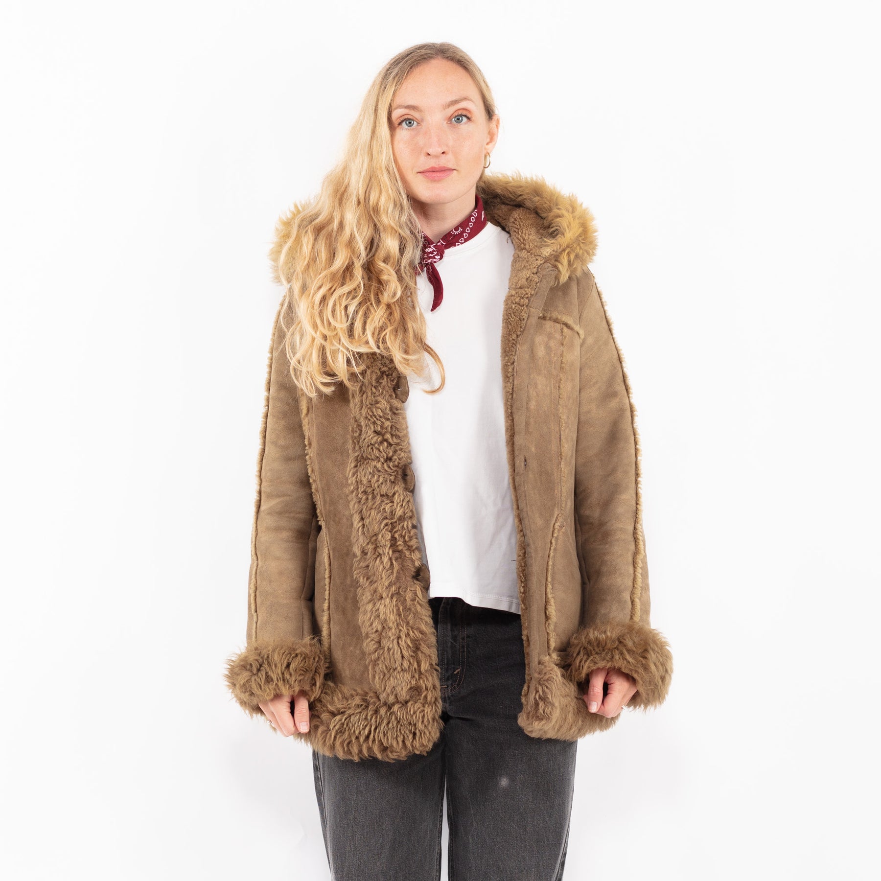 Vintage 90's Penny Lane Sheepskin Coat in Brown