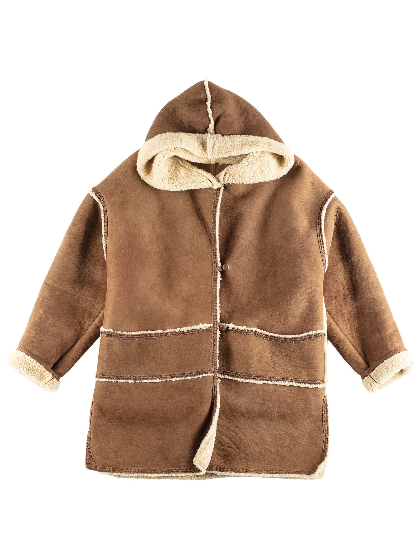Vintage condition evaluation: 8/10 – light overall wear with natural creasing to the leather. Shearling remains soft and full. No major defects visible.