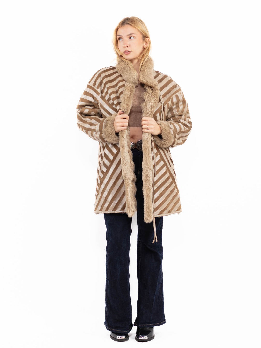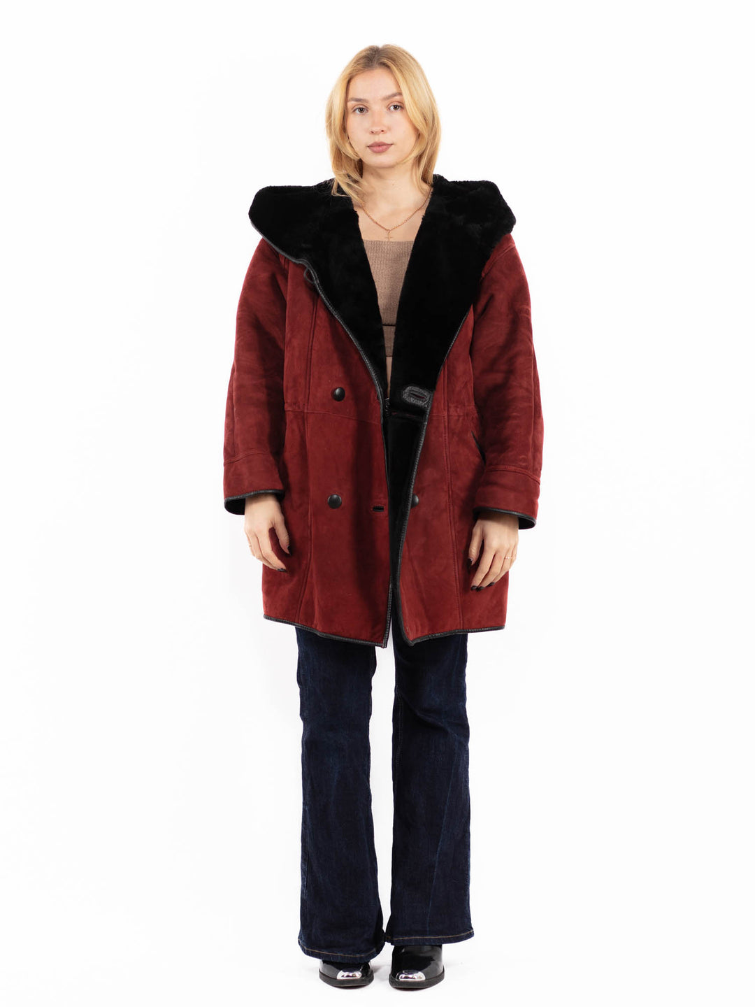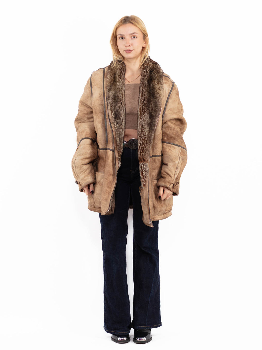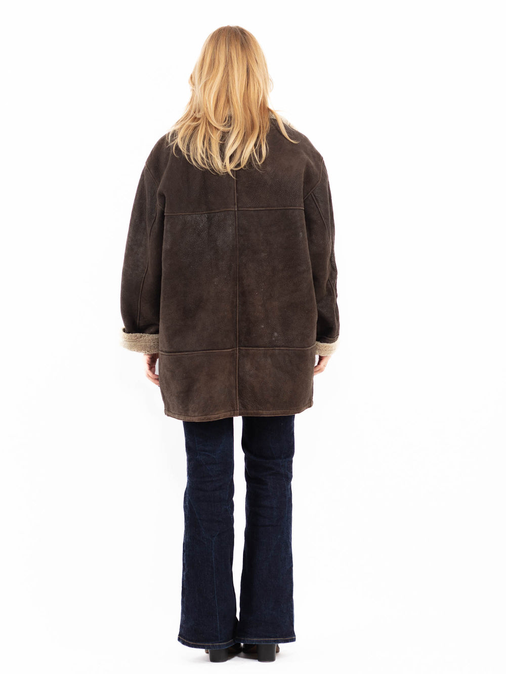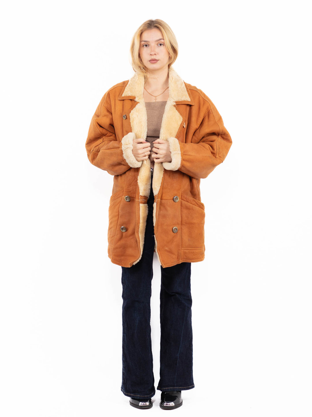 To be sure that your vintage women's sheepskin is real, check the tag or give a long and thorough inspection to see whether the fabric is natural or not. If you see that there is an artificial fabric at the base of the fibers, then the coat is not genuine.