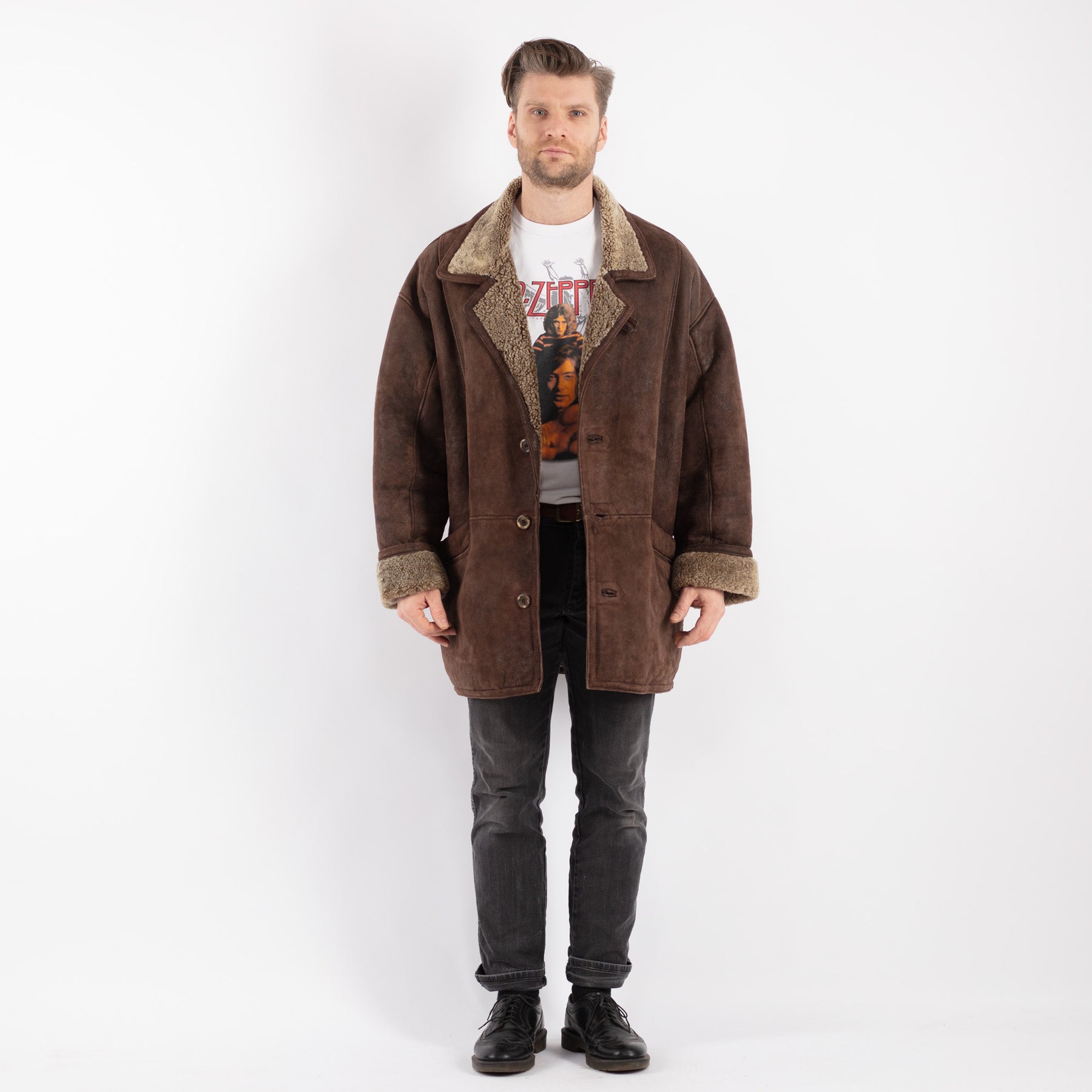 Vintage 90's Men Oversized Sheepskin Coat in Brown
