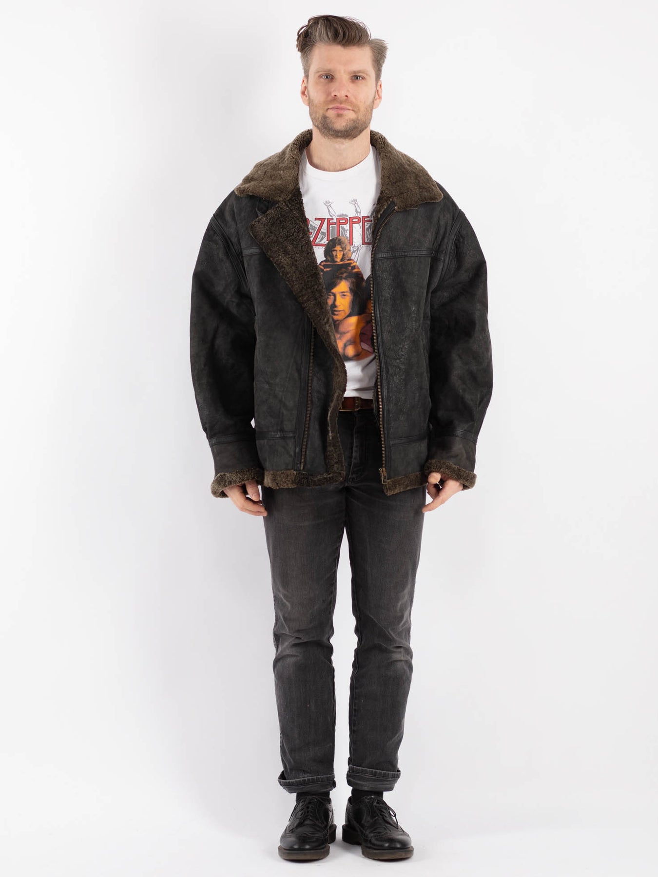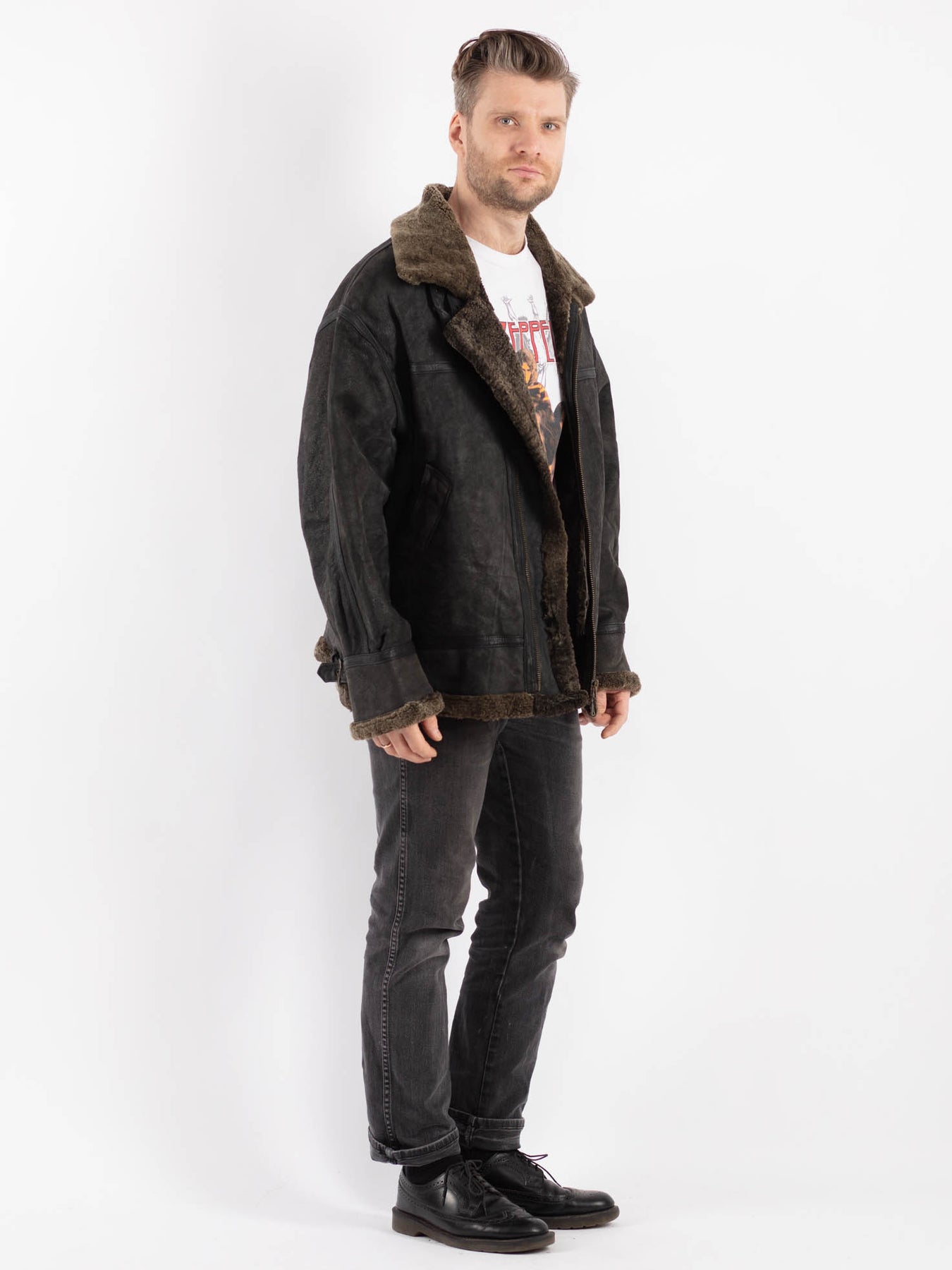 Vintage 90's Men Sheepskin Jacket in Black