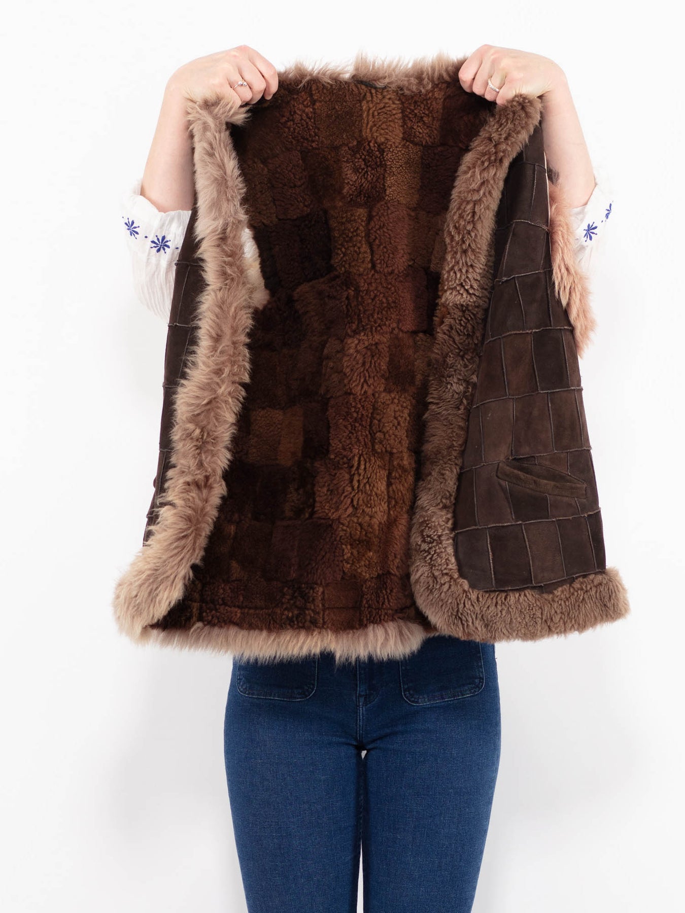Brown Vintage 70's Women Sheepskin Vest in Brown With Free Delivery