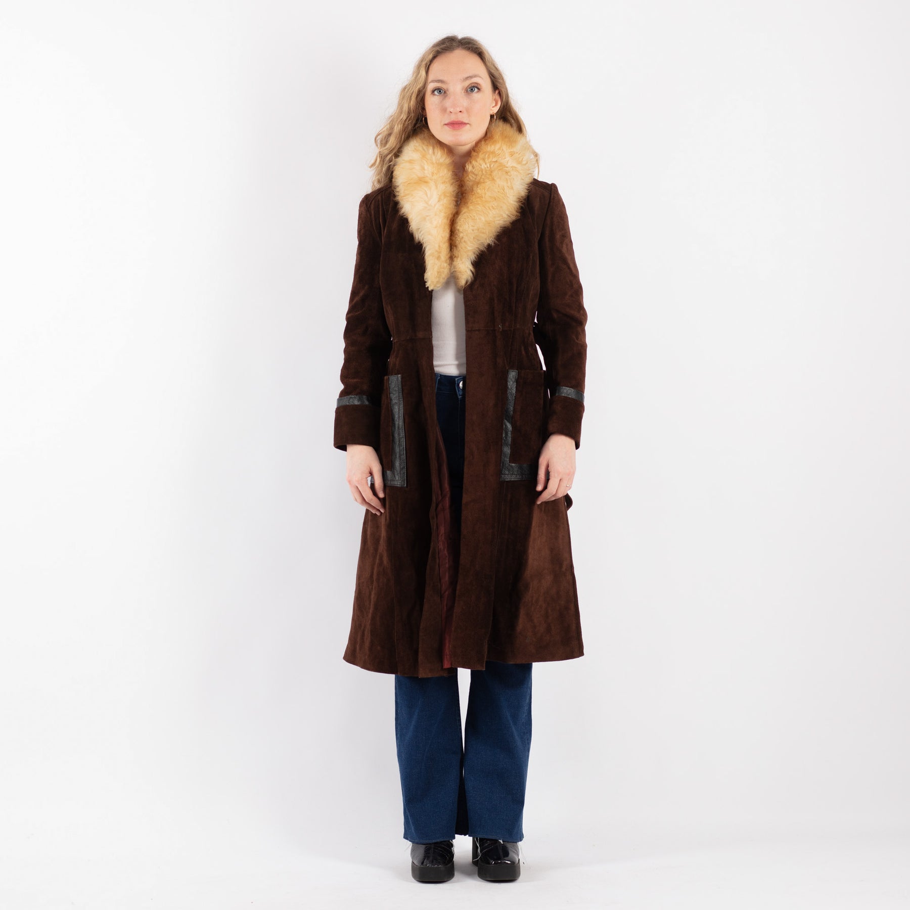 Brown Vintage 70's Penny Lane Suede Coat in Brown With Free Delivery