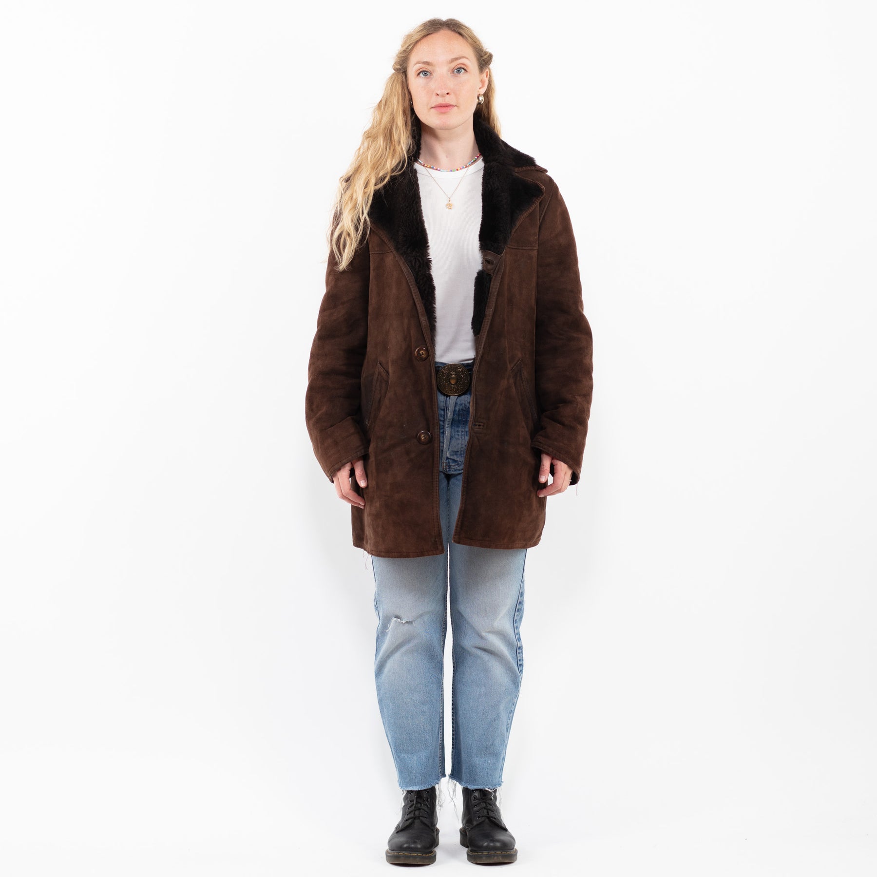 Vintage 80's Unisex Sheepskin Coat in Brown