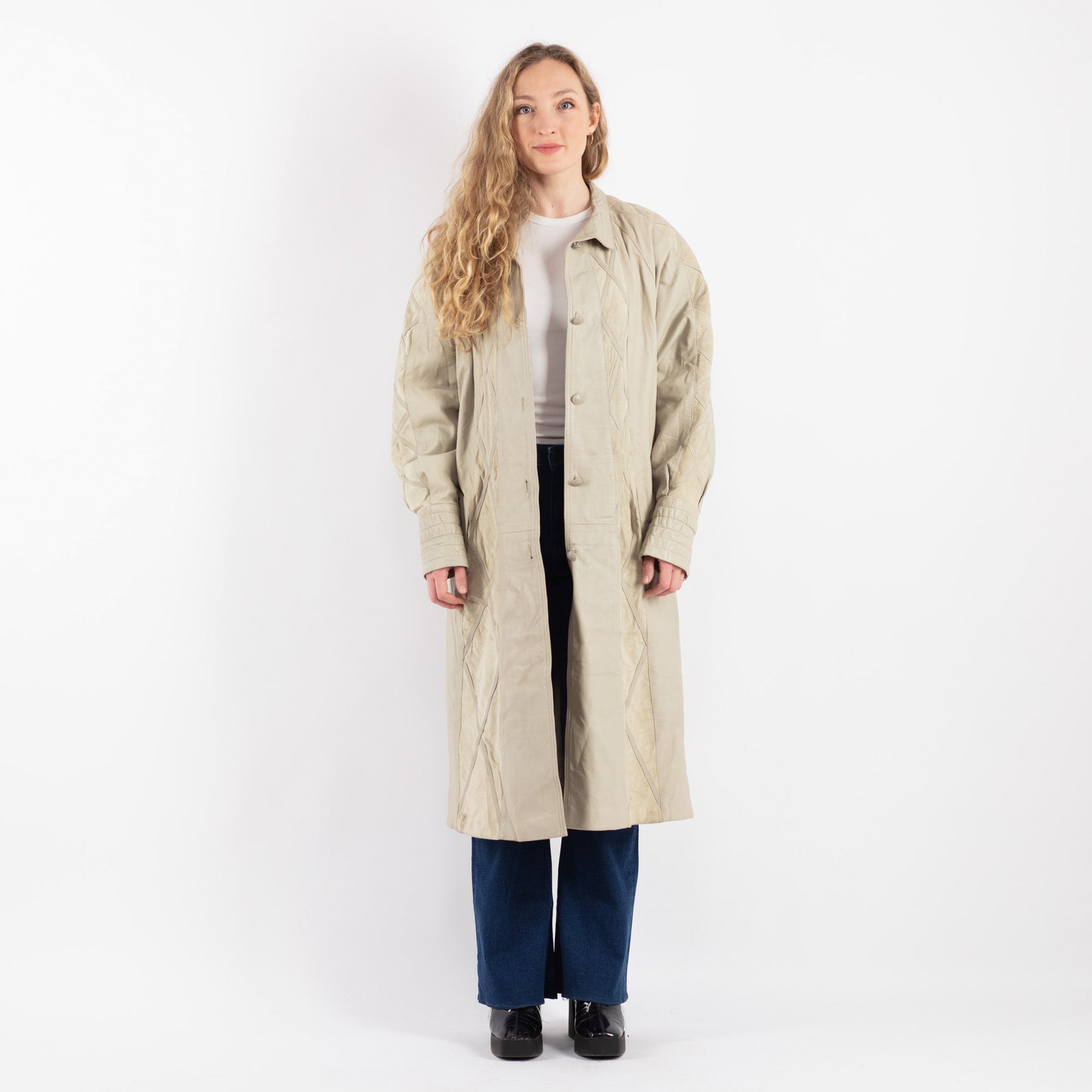 Beige Vintage 90's Women Leather Coat in Beige With Free Delivery