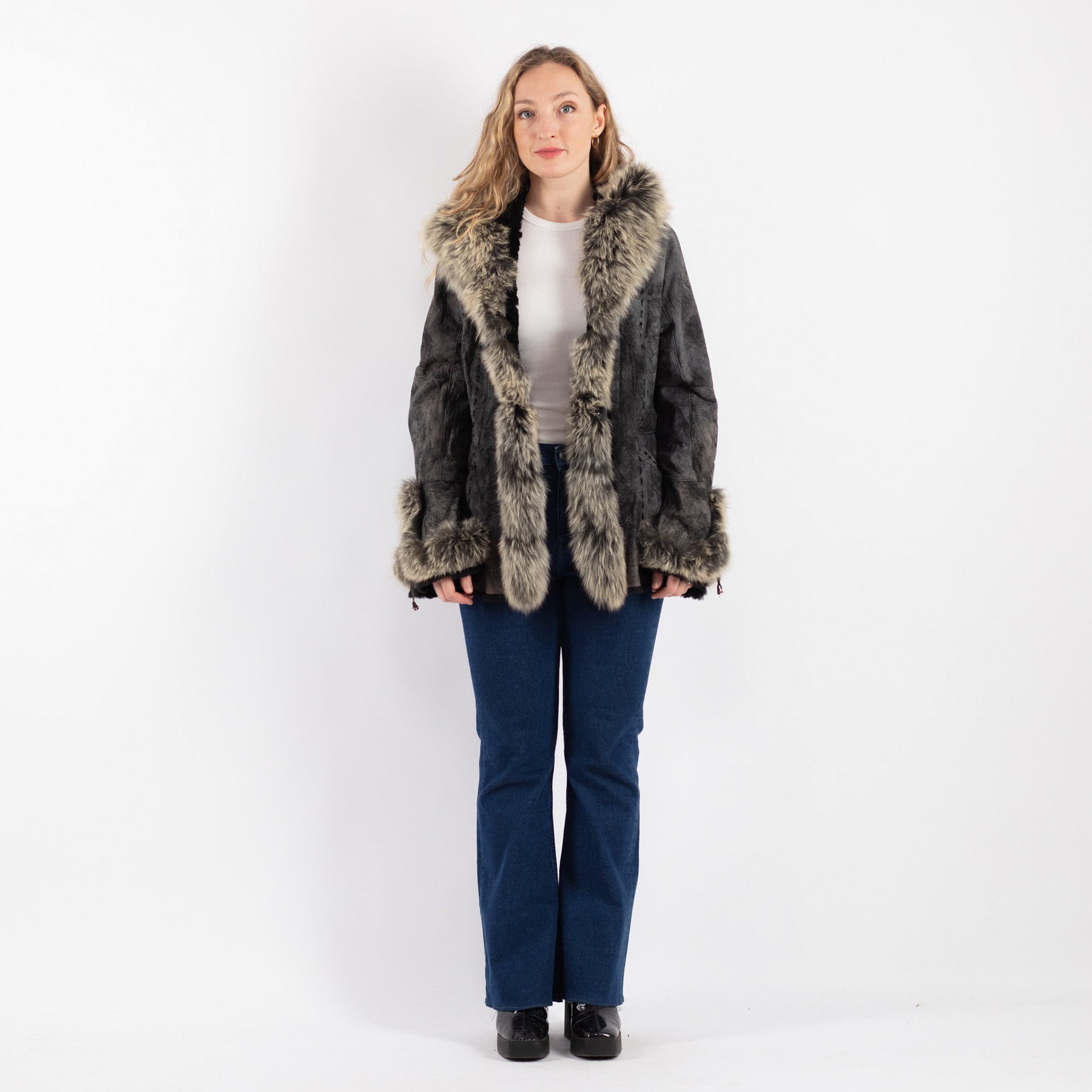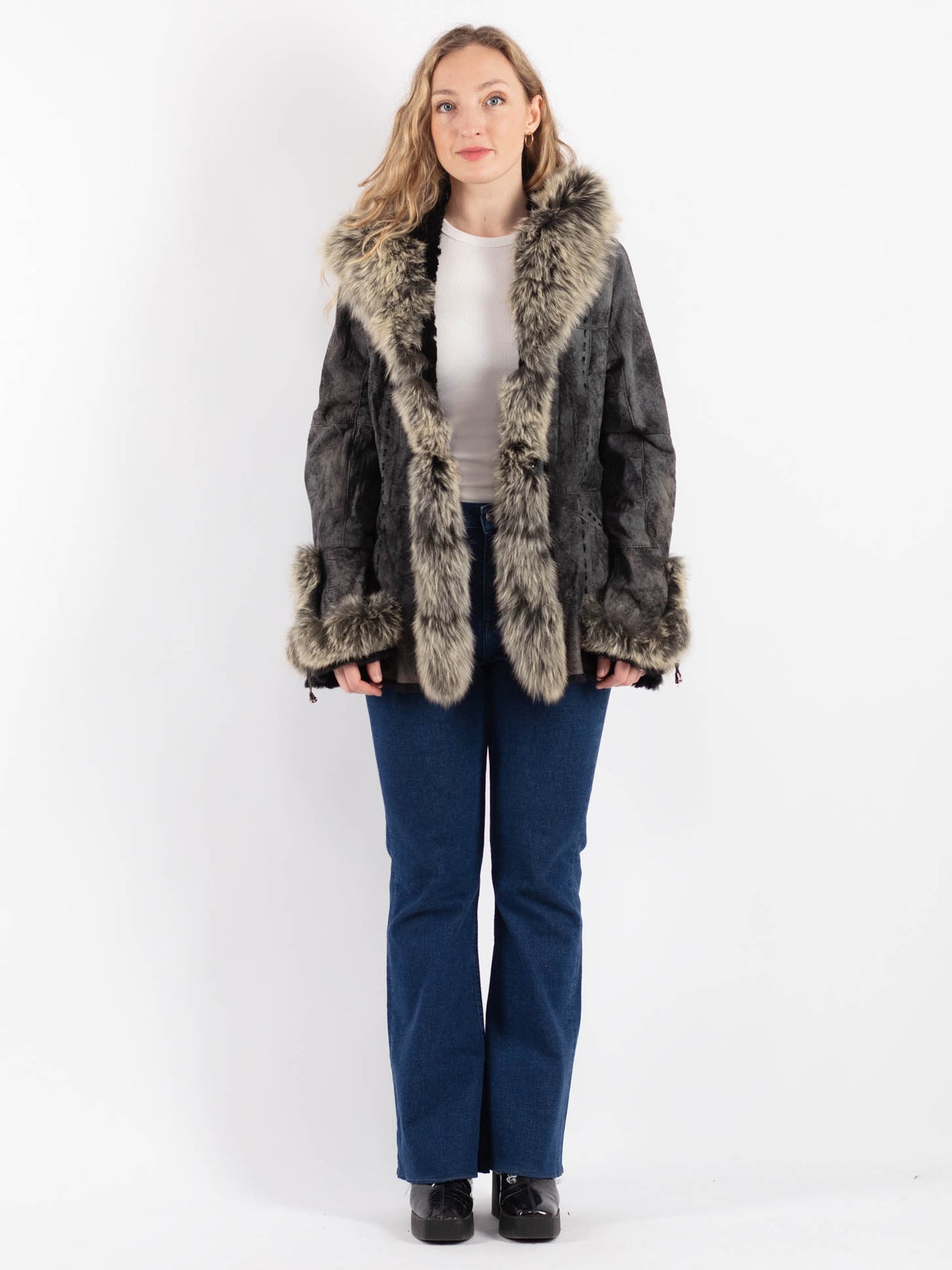 Gray Vintage 00's Penny Lane Sheepskin Jacket in Gray With Free Delivery