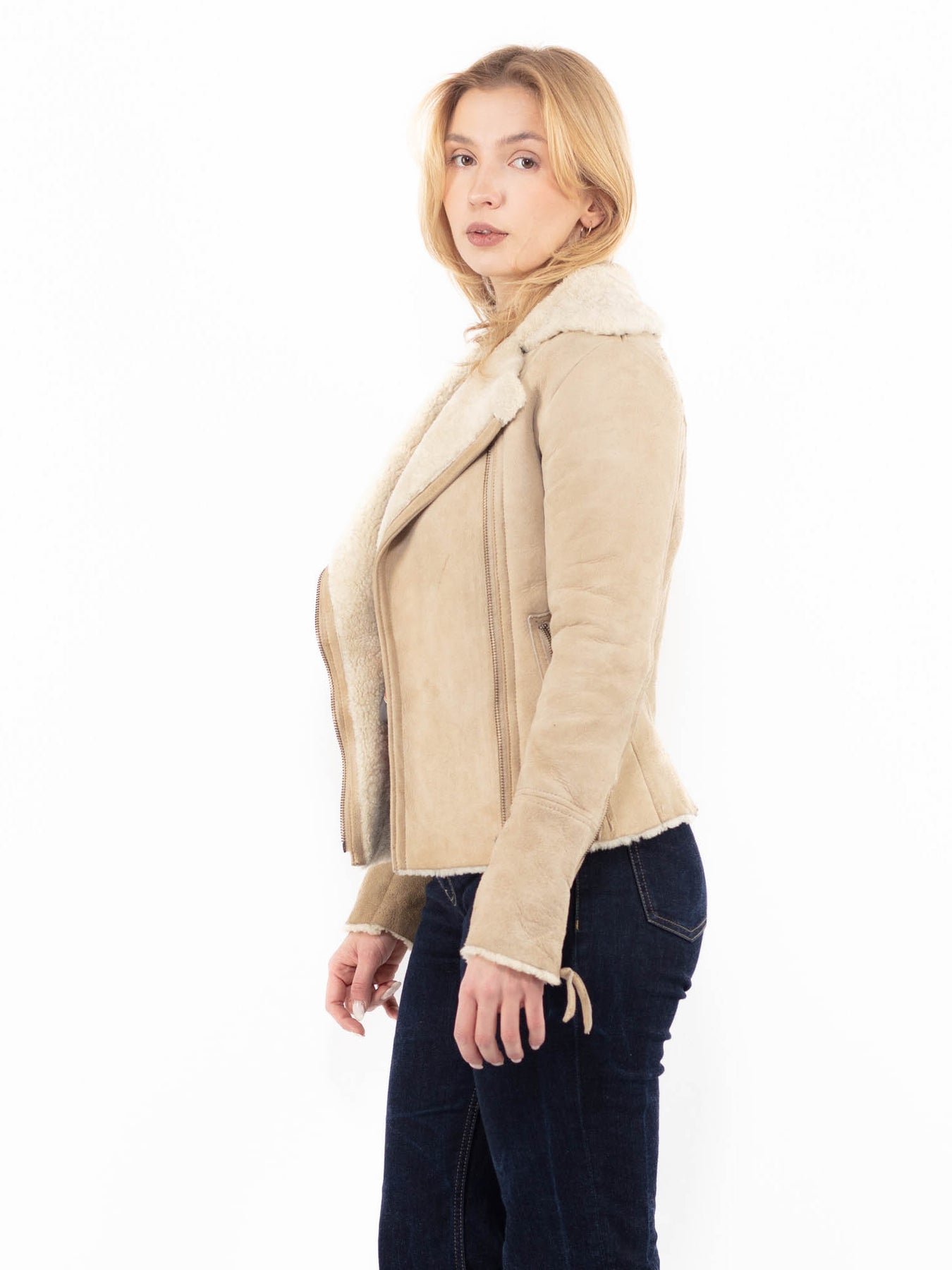 Vintage 00's Women Sheepskin Jacket in BeigeA1105