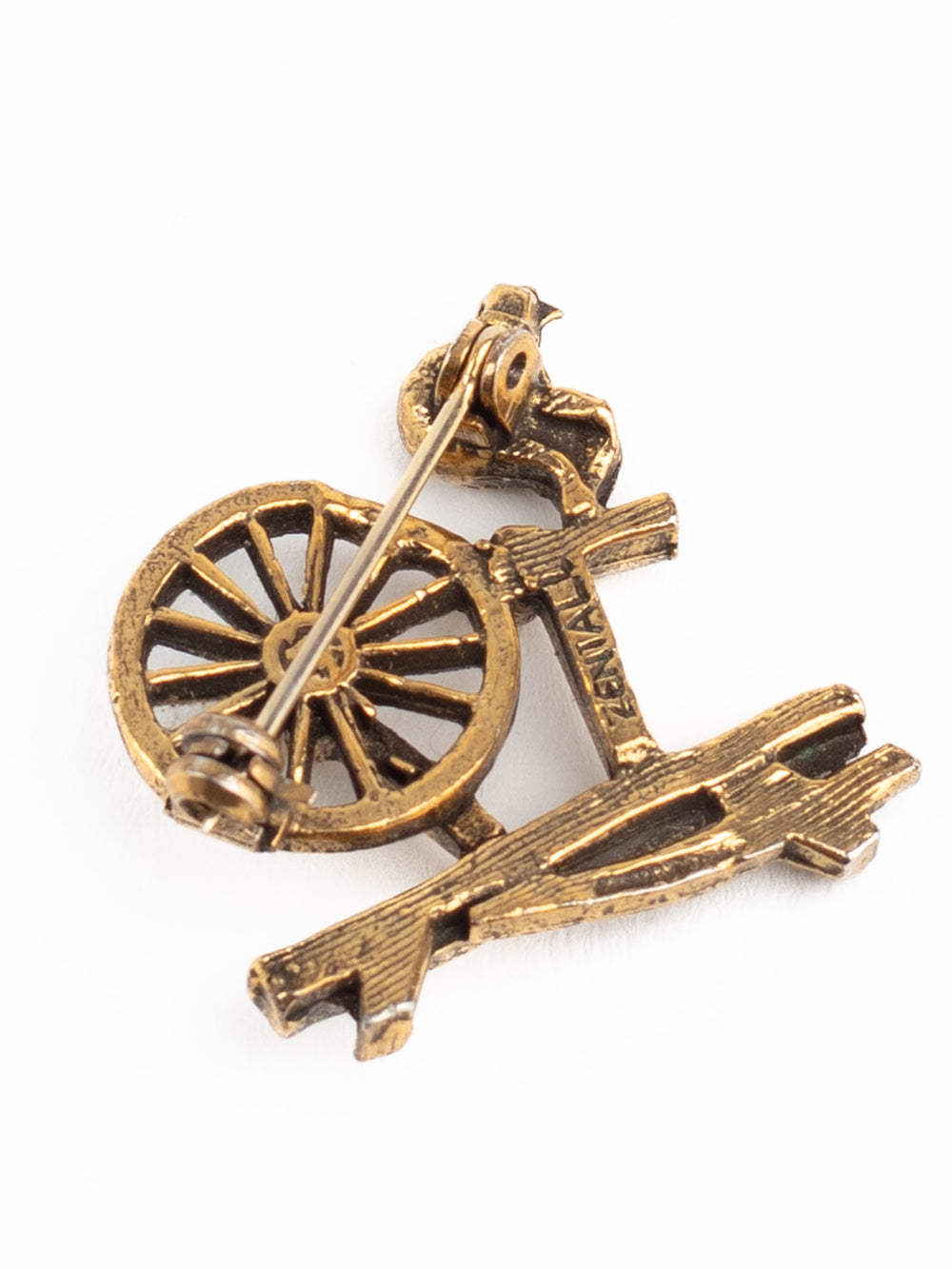 Vintage 70s Bronze-Tone Spinning Wheel Brooch – Folk Art Textile-Inspired Pin
