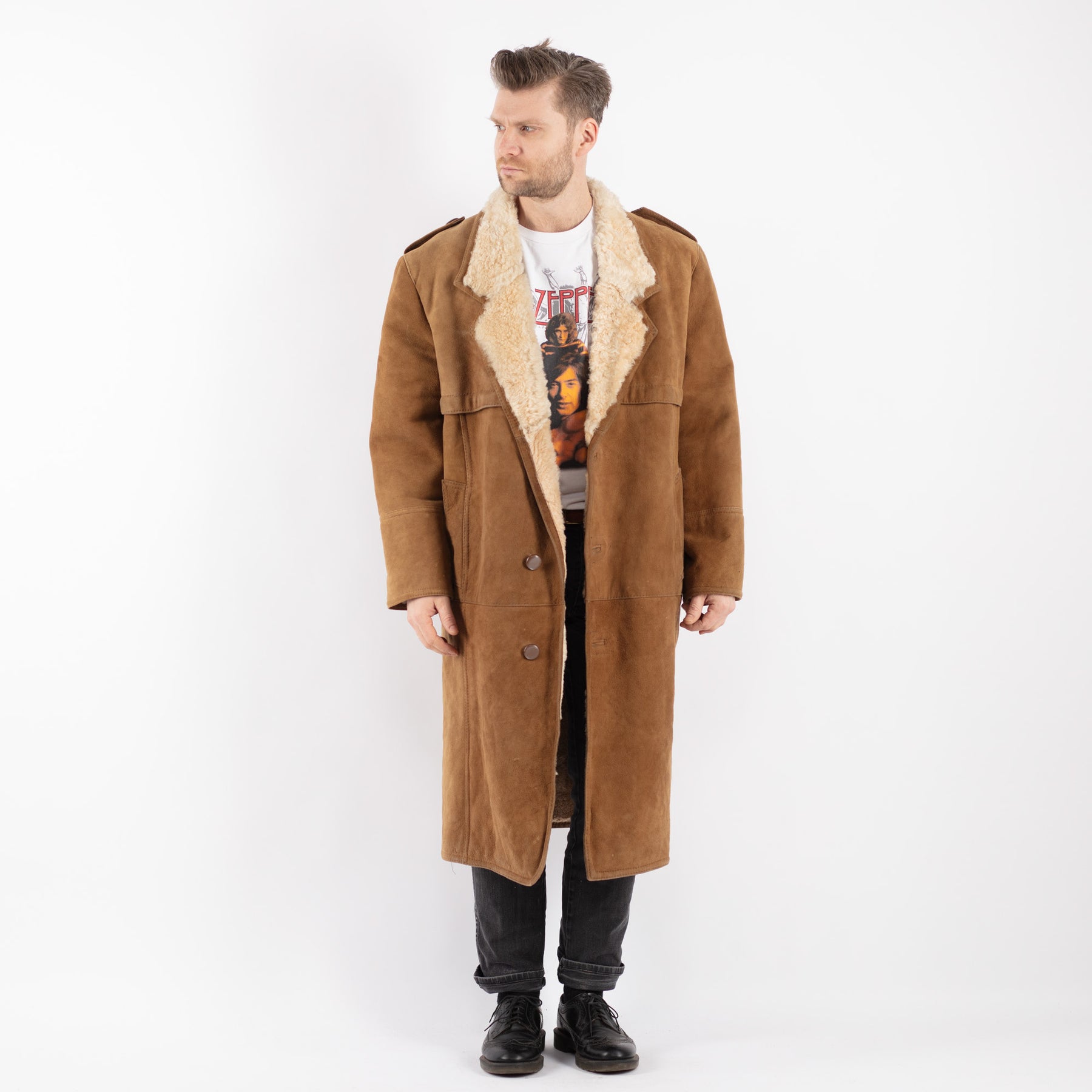 Vintage 70's Men Sheepskin Coat in Brown