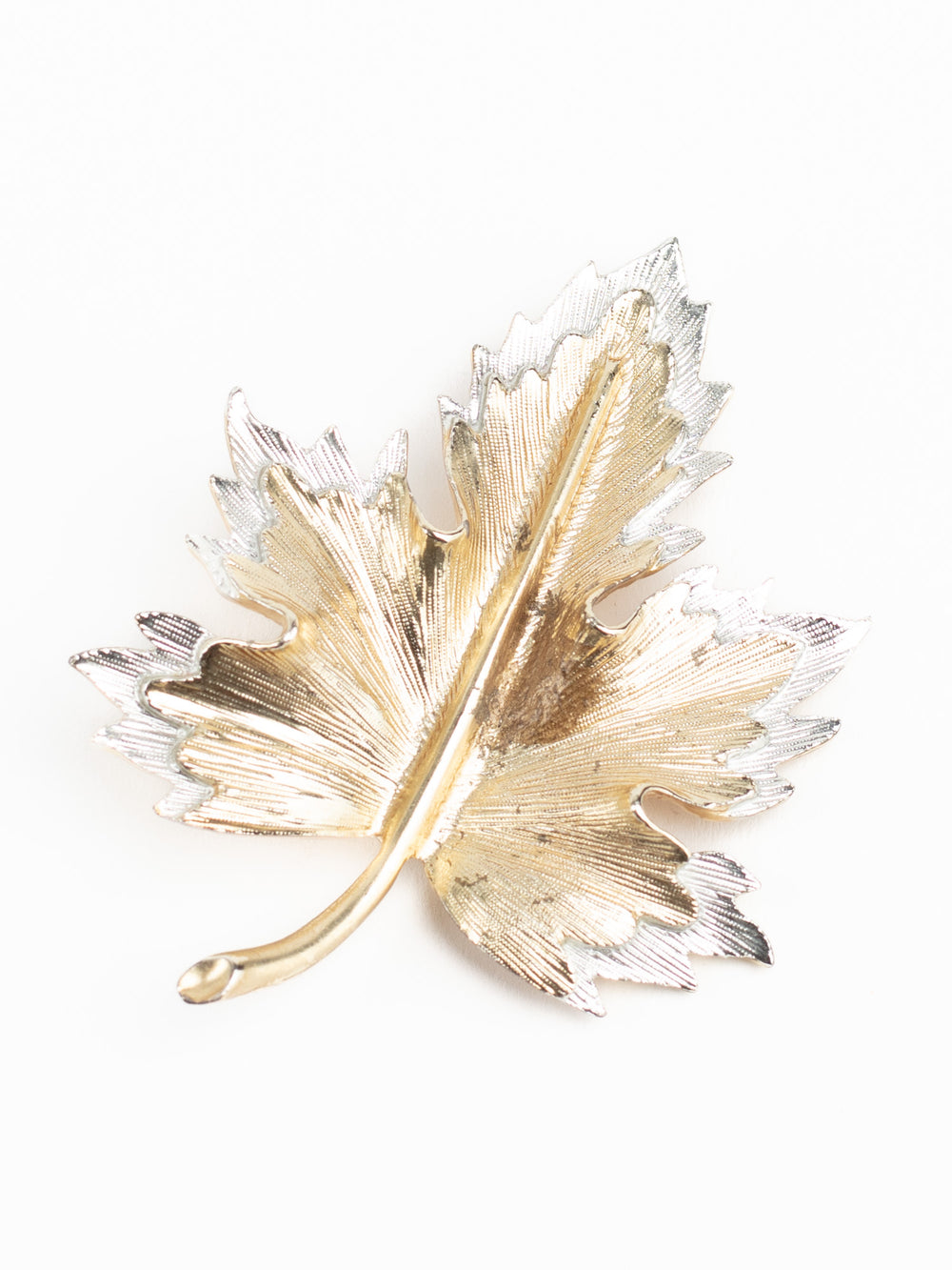 Vintage 70s SARAHCOV Gold-Tone Maple Leaf Brooch ā Textured Two-Tone Statement Pin