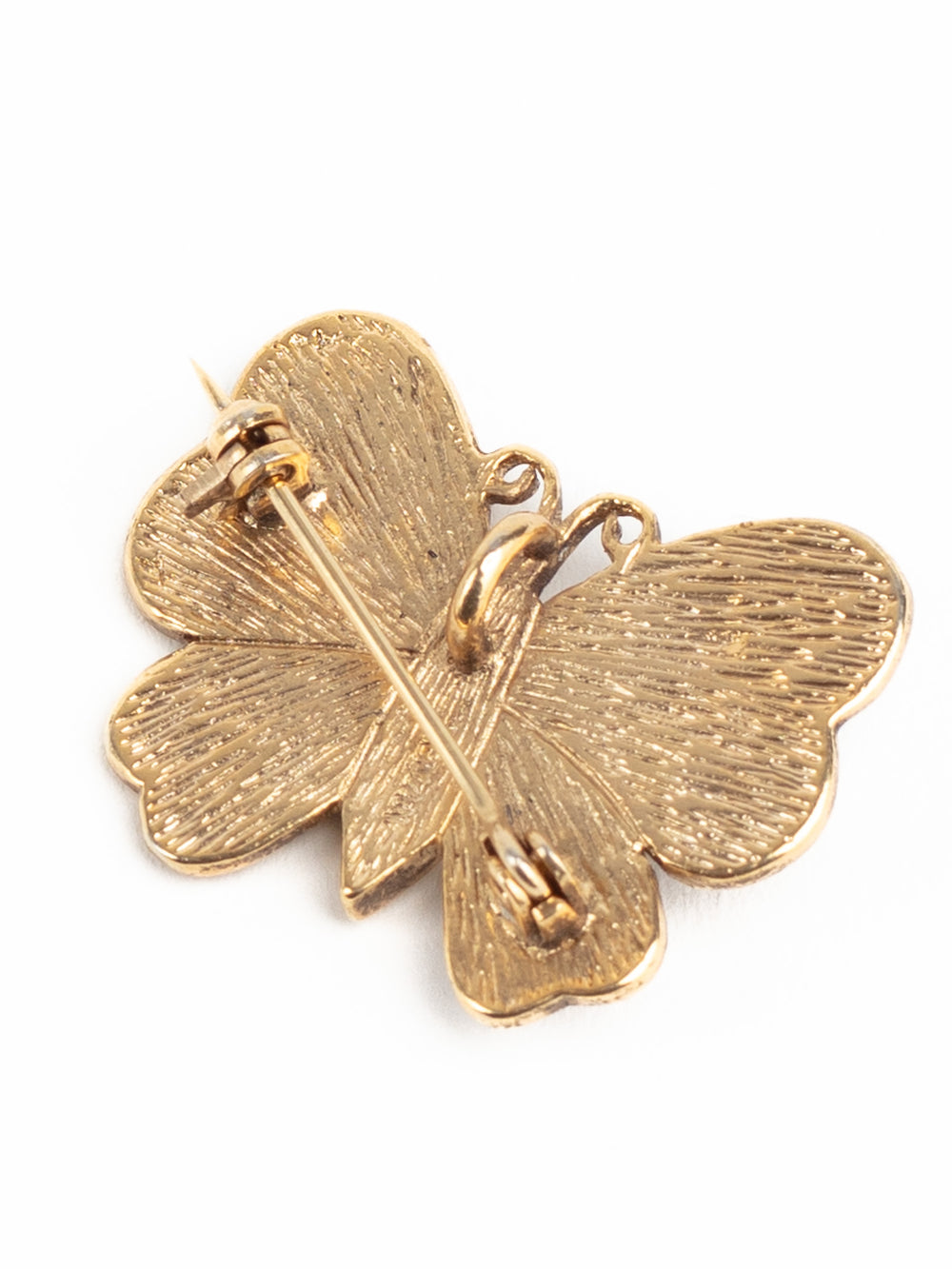 Vintage 90s Gold-Tone Butterfly Brooch with Black Enamel and Rhinestones