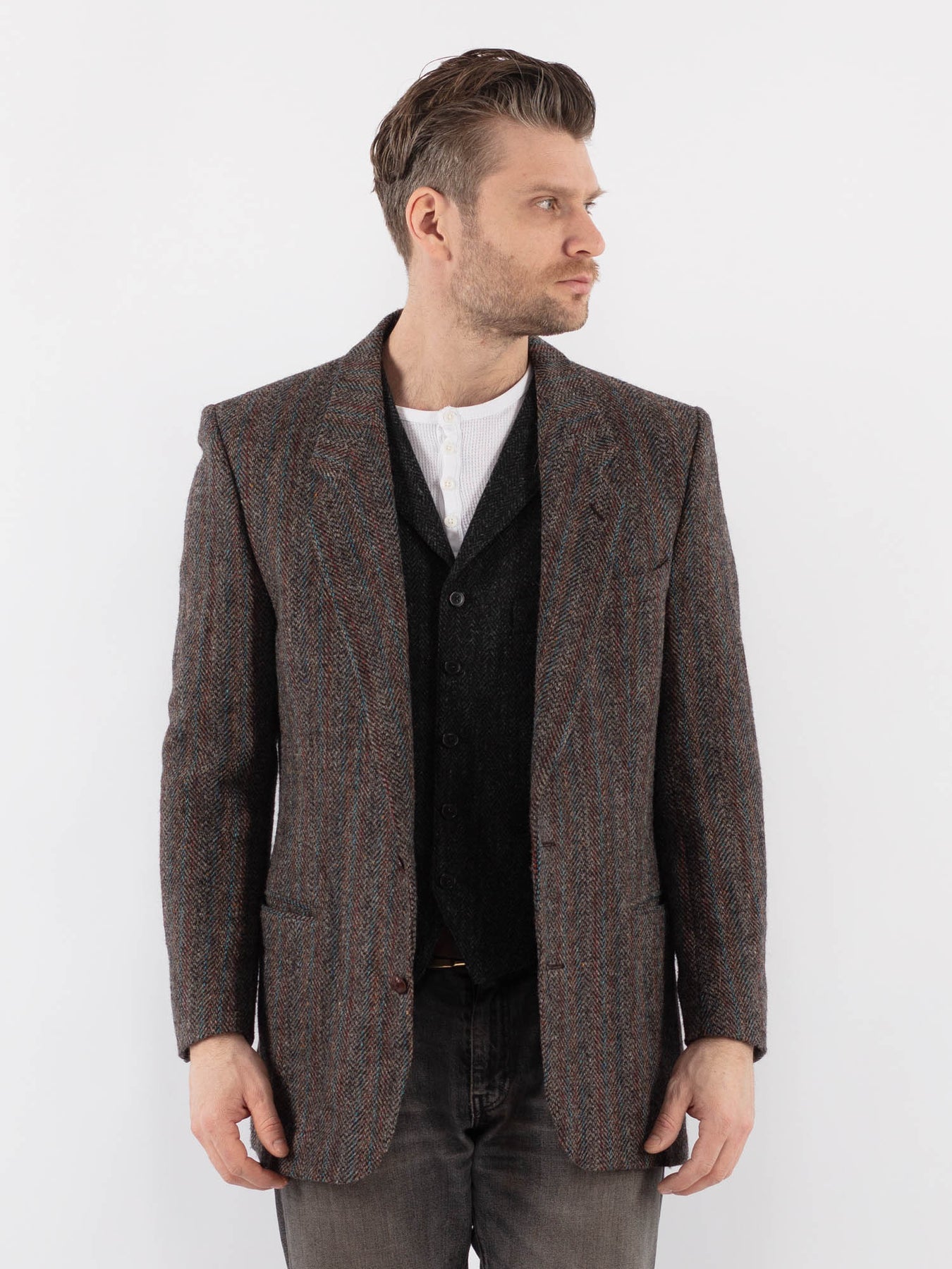 Vintage 90's Men Harris Tweed Jacket in Gray Brown