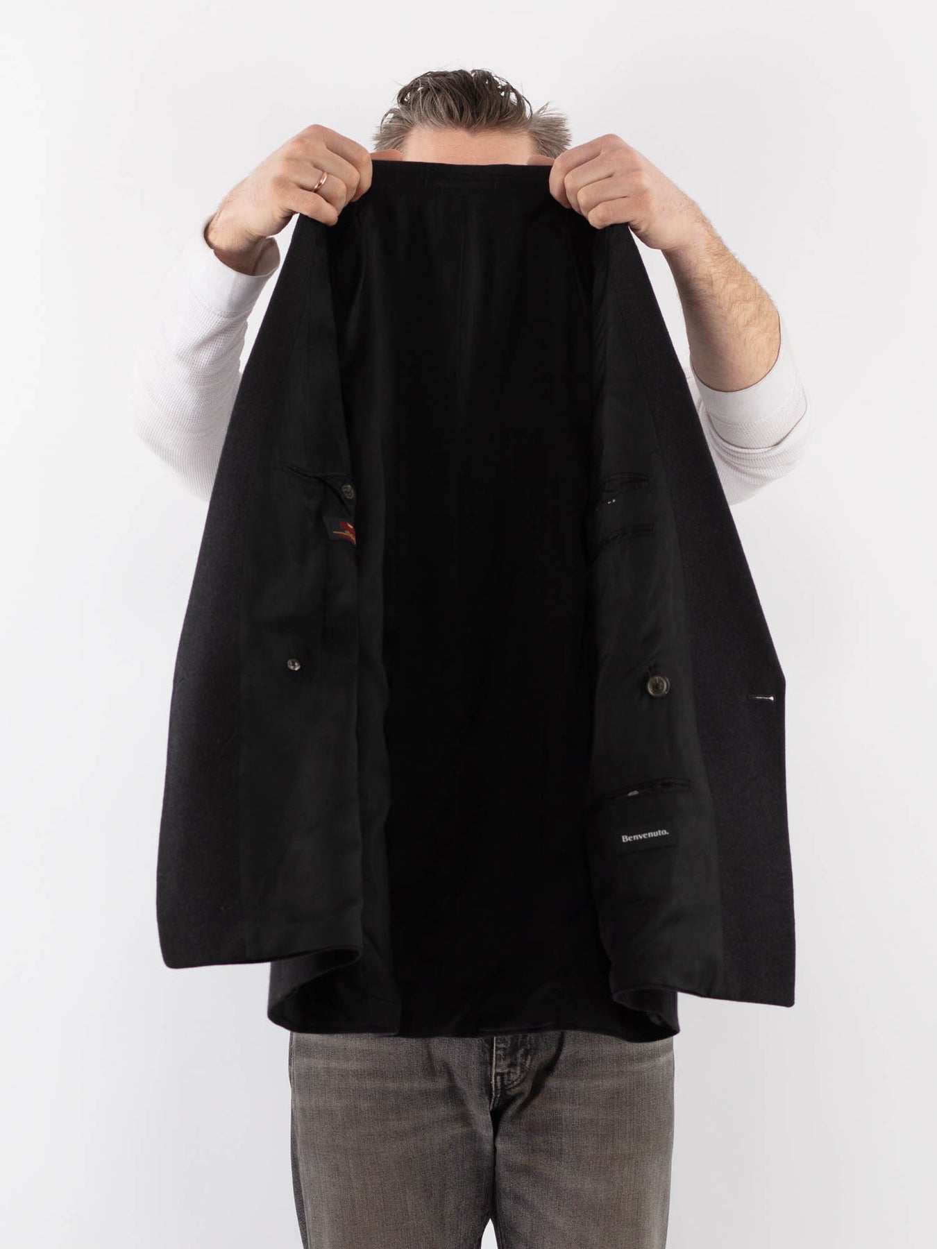 Gray Vintage 90's Men Wool Blend Blazer Jacket in Gray With Free Delivery