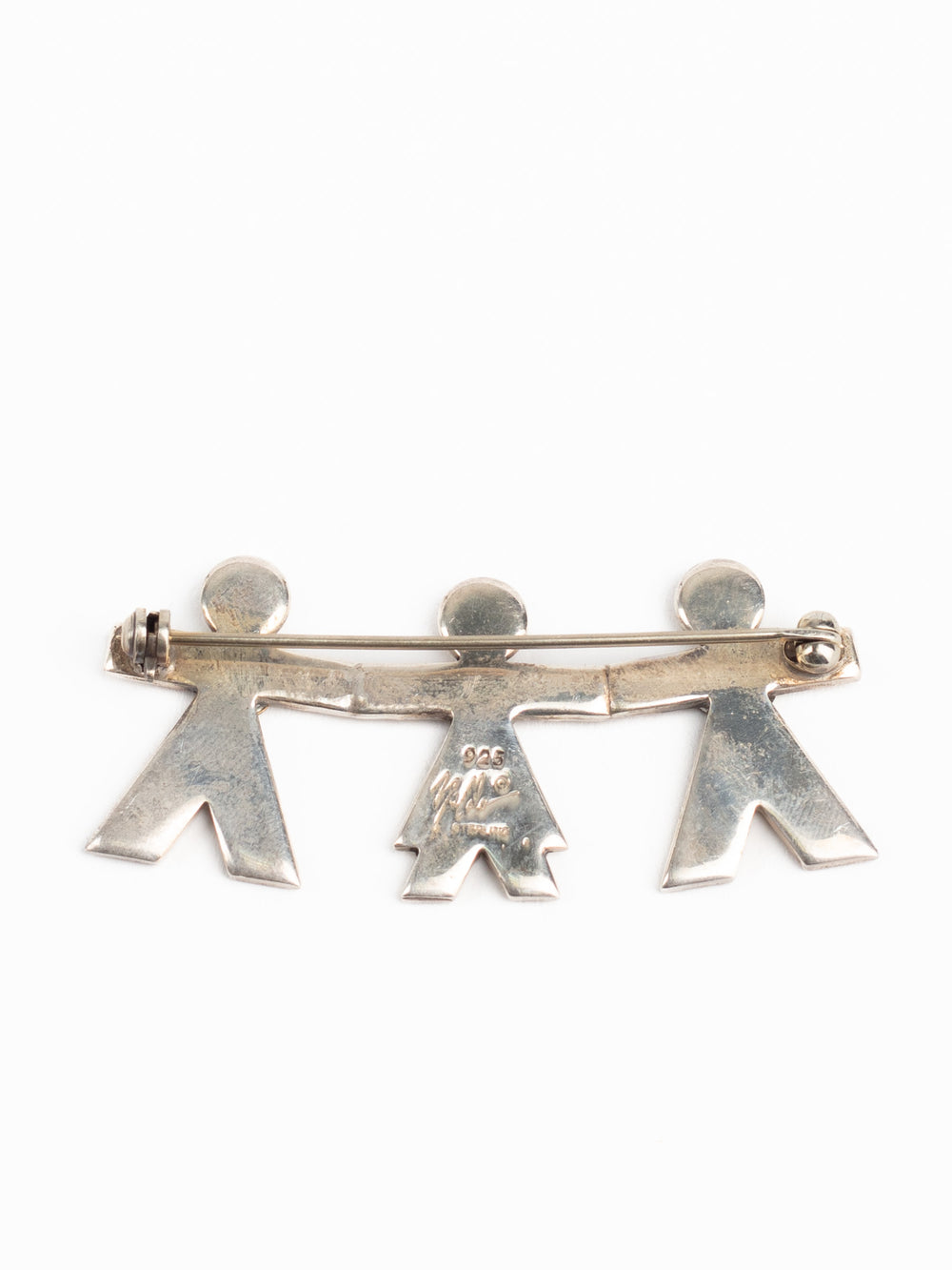 Vintage 90s Sterling Silver Family Brooch with Brass Accents – Mexico 925 Signed