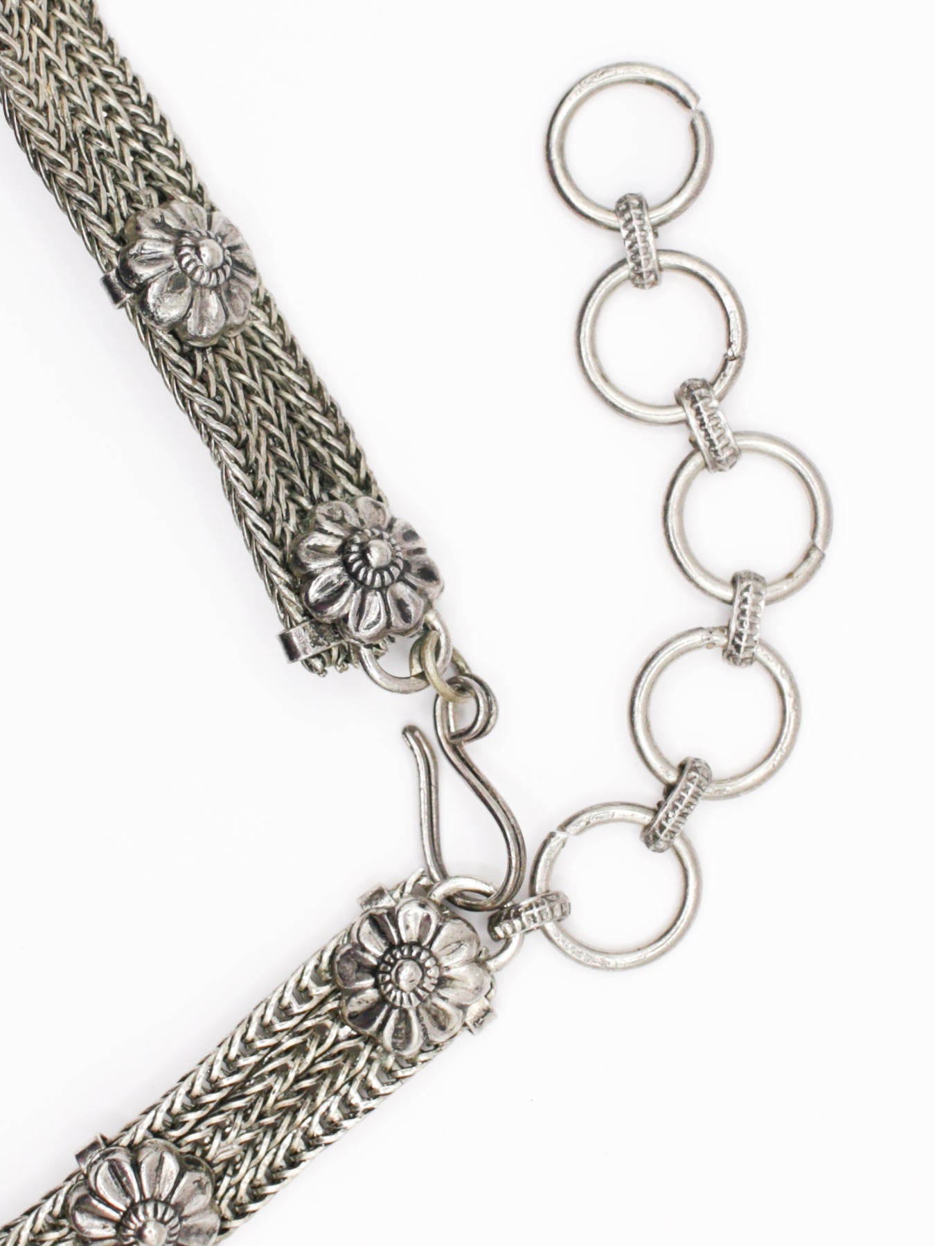 Vintage Silver Tone Floral Mesh Chain Necklace With Daisy Links