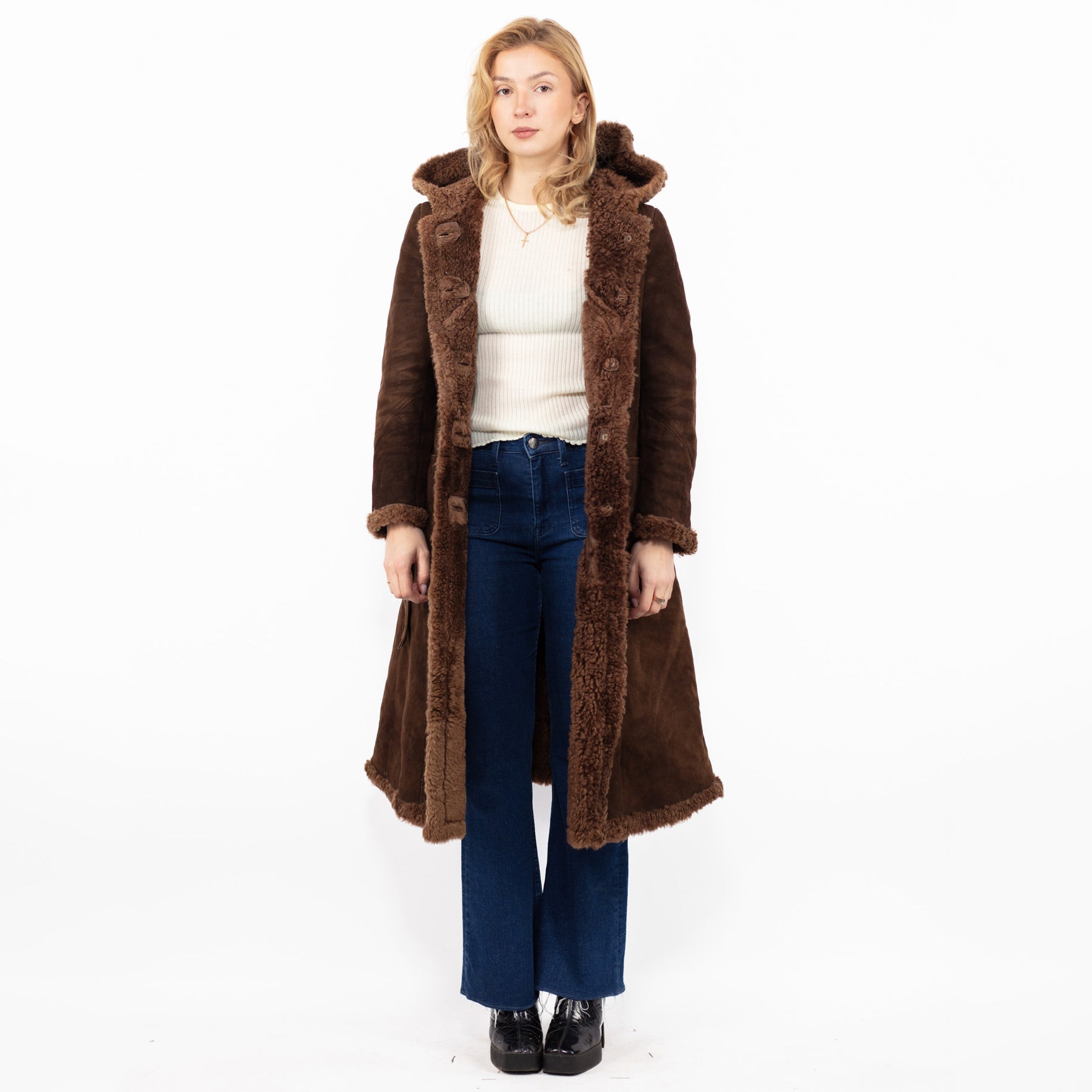 Brown Vintage 70's Women Sheepskin Coat in Brown With Free Delivery