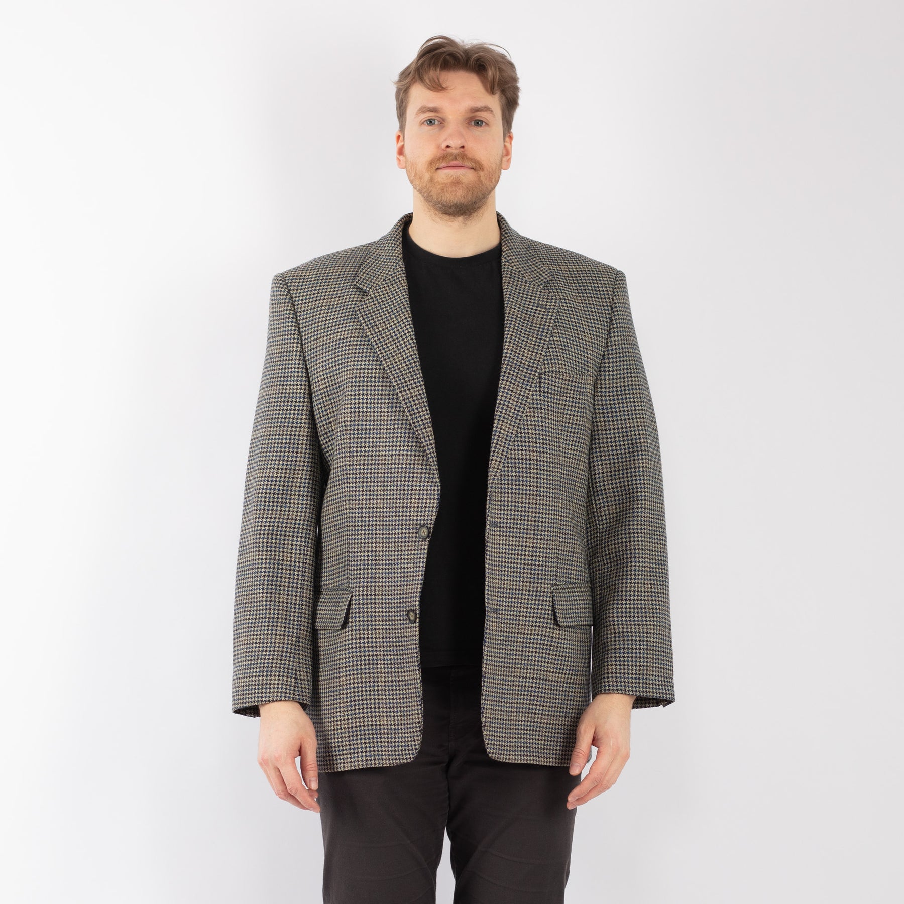 Vintage 90's Men Wool Blazer Jacket in Beige Blue